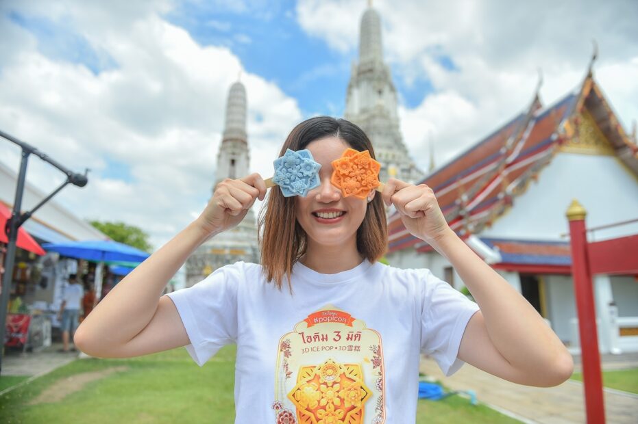 คุณน้ำตาล เล่าด้วยน้ำเสียงที่สดใสว่า “ตาลชอบเรื่องวัฒนธรรม ศิลปะ ประวัติศาสตร์มาตั้งแต่เด็ก พอโตมาเรียนจบด้านธุรกิจและทำงานด้านมาร์เกตติ้งอยู่พักหนึ่ง ตอนนี้ออกมาทำป็อบ ไอคอน ไอศกรีม 3 มิติเต็มตัวได้ปีกว่า ที่มาของความตั้งใจทั้งหมดมาจาก ความชอบกินไอศกรีมมาก มีแพชชั่นเรื่องไอศกรีม ชอบวัฒนธรรมศิลปะ เลยออกมาลงตัวกับการท่องเที่ยวของไทย ขายความคลาสสิก และจับมารวมกันเป็นไอศกรีมชุดนี้ พอมีประสบการณ์บวกกับการมีแพชชั่นทำงาน มีความสุข เลยโอเคทำได้ เราทำทุกอย่างเอง ตัดสินใจเอง ดู 360 องศา เองไอศกรีมที่ทำออกมา เพื่อให้คนเห็นและฉุกคิดว่า มีกระเบื้องที่สวยงาม ที่เกิดเป็นพระปรางค์วัดอรุณฯ ที่สวยงาม อยากให้คนไปดูศิลปะในพระปรางค์ เดือนเดียวพอทำออกมารู้สึกดีใจที่คนไทยให้การตอบรับที่ดี ทุกคนรู้สึกดีใจเหมือนรออยู่ว่าเมื่อไหร่เอกลักษณ์ไทยจะถูกออกมาโชว์ รู้สึกว่าคนไทยรักในศิลปวัฒนธรรมไทยต้องการส่งเสริมการท่องเที่ยวไทย