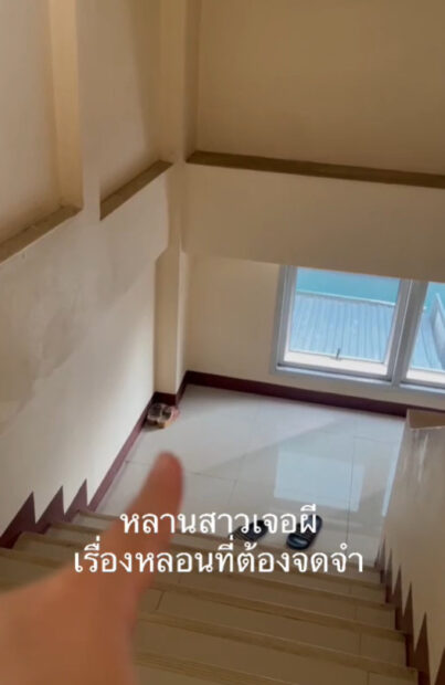 ซึ่งในคลิปเผยให้เห็นตอนที่หลานสาวกำลังยืนอยู่ที่บันได และบอกว่าเห็นผี เจ้าของคลิปเลยถามว่า “ผีอยู่ตรงไหน” หลานสาวก็ตอบพร้อมกับชี้ไปที่บันไดว่า “อยู่ตรงนั้น กำลังเดินไป” เธอจึงถามต่อว่า “เป็นผู้หญิงหรือผู้ชาย” หลานสาวก็ตอบว่า “เป็นผู้หญิง ใส่เสื้อสีขาว ตอนนี้กำลังเดินลงบันได”