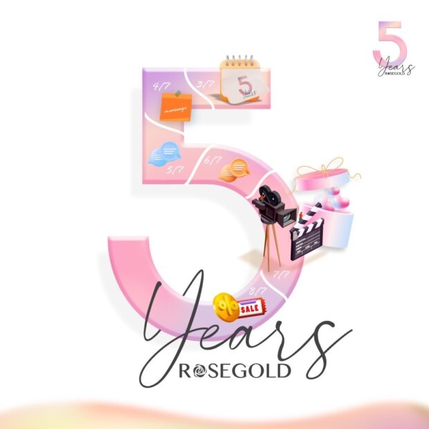 คุณวาว แวววรรณ กันต์นันท์ธร CEO บริษัท โรสโกลด์ (ไทยแลนด์)จำกัด ได้จัดงานเฉลิมฉลองของ Rosegold(โรสโกลด์) ครบรอบ 5 ปีในวันที่ 7 กรกฎาคม 2566 ผ่านการ Live ในช่องทาง Facebookfan page Rosegold Thailand -HQ โดยกิจกรรมภายในจะมีการพูดคุย ถึงการ เดินทางตลอด 5 ปีที่ผ่านมาของโรสโกลด์รวมถึงพูดคุยในโปรเจคที่จะมีต่อไปในอนาคตของ Rosegold (โรสโกลด์) และนอกจากนั้นในโอกาสครบรอบ 5 ปี จึงจัดโปรโมชั่นชุดใหญ่เพื่อขอบคุณและตอบแทนลูกค้าที่อยู่มาอย่างยาวนาน