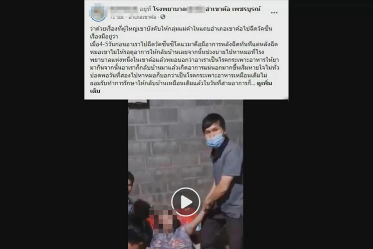 วันที่ 10 ก.ย. ผู้สื่อข่าวรายงานว่า มีผู้ใช้เฟซบุ๊กรายหนึ่ง ได้โพสต์ภาพและคลิปวิดีโอ พร้อมระบุข้อความว่า “ว่าด้วยเรื่องที่ผู้ใหญ่เขาบังคับให้กลุ่มแม่ค้าในแถบอำเภอเขาค้อไปฉีดวัคซีน เรื่องมีอยู่ว่า เมื่อ 4-5วันก่อน อาเราไปฉีดวัคซีนซิโนแวคมา คือมีอาการหลังฉีดทันที แต่หลังฉีดหมอเขาไม่ให้รอดูอาการให้กลับบ้านเลย จากนั้นช่วงบ่ายไปหาหมอที่โรงพยาบาลแห่งหนึ่งในเขาค้อ แล้วหมอบอกว่าอาเราเป็นโรคกระเพาะอาหาร ให้ยามากิน จากนั้นอาเราก็กลับบ้านมาแล้วเกิดอาการแน่นหน้าอกมากขึ้น เริ่มหายใจไม่ทั่วปอด พอวันที่สองไปหาหมอก็บอกว่าเป็นโรคกระเพาะอาหารเหมือนเดิมไม่ยอมรับทำการรักษา ให้กลับบ้านเหมือนเดิม แล้วในวันที่สามอาการก็หนักขึ้นเรื่อยๆ ไปหาหมอก็ยังพูดแบบเดิม จนมาวันนี้คืออาการแย่แน่นอกตัวชาไปทั้งตัว เดินไม่ได้ขยับตัวไม่ได้