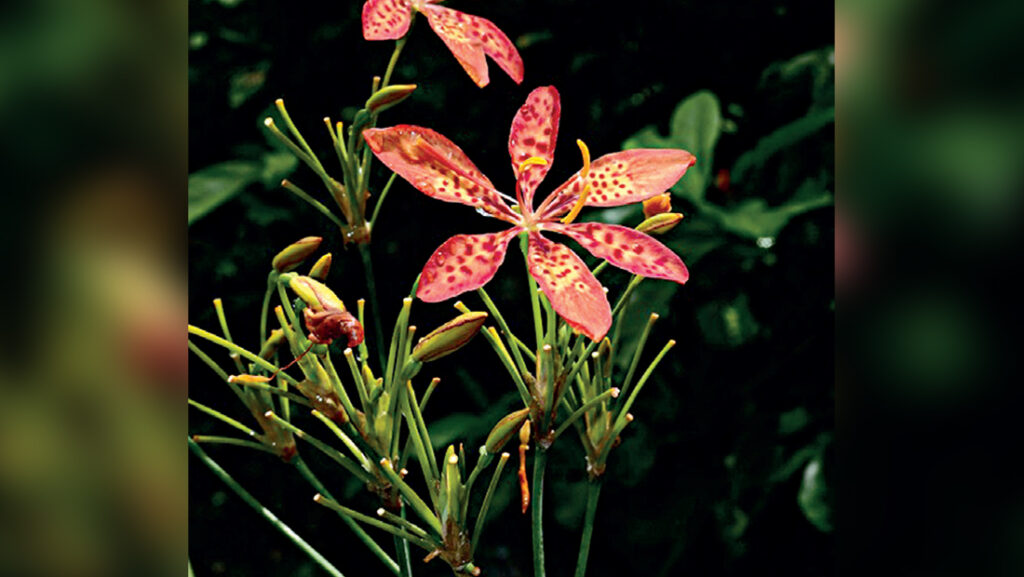 ต้น ไม้ขนาดเล็ก ลำาต้นเป็นข้อๆสูง 50-120 ซม. ต้นสีเหลือง และมีรากฝอยจำานวนมาก ใบ ออกสลับเป็น 2 แถว มีแผ่นแบนคล้ายว่านน้ำ ตัวใบจะตรงยาว ปลายใบแหลม ดอก ออกเป็นช่อ ตรงยอด แตกแยกเป็น 2-3 ช่อ มีกลีบดอกเป็นแผ่นยาว และตรงปลายแหลม ดอกโต ผล ยาว มี 3 พู เมื่อสุกจะแตกออกเป็น 3 กลีบ ภายในมีเมล็ดกลมดำ เอาใบ 3 ใบแล้วปรุงเป็นยาต้ม ใช้เป็นยาระบาย รักษาระดูพิการของผู้หญิง