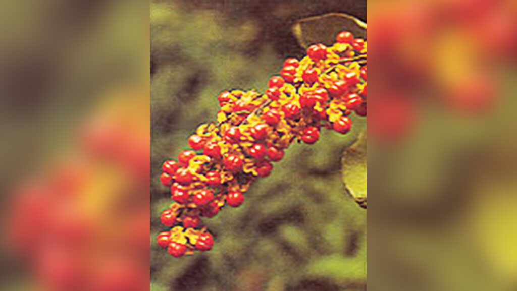 ต้น ไม้พุ่มเลื้อย สูงประมาณ 2-10 ม. เนื้อ ไม้เป็นสีน้ำตาล ใบเดี่ยว รูปไข่ หรือรี โคนใบสอบเข้าหากันมน ส่วนปลายใบแหลม หลังใบพื้นผิวเรียบ ใต้ท้องใบมี 5-8 คู่ ขนาดกว้าง 1-2.5 นิ้ว ยาว 2-6 นิ้ว ดอก ออกเป็นช่อ ยาว 4-8 นิ้ว บริเวณปลาย ยอด ดอกเพศผู้และเพศเมียแยกอยู่คนละต้น ผล ค่อนข้างกลม ปลายผลมียอดเกสรตัวเมียติดอยู่ กว้าง 5-8 มม. ยาว 5-10 มม. ผลแก่เต็มที่เกสรที่อยู่หลายผลก็จะหลุดออก ผลแตกออกเป็นห้อง 3 ห้อง ราก ต้มดื่มแก้นิ่ว ใบ ต้มกินเป็นยาระบาย ต้มดื่มเป็นยาบำรุงร่างกาย รากต้มดื่มแก้ปัสสาวะขัด ลำต้น ขับปัสสาวะแก้ไตพิการ.