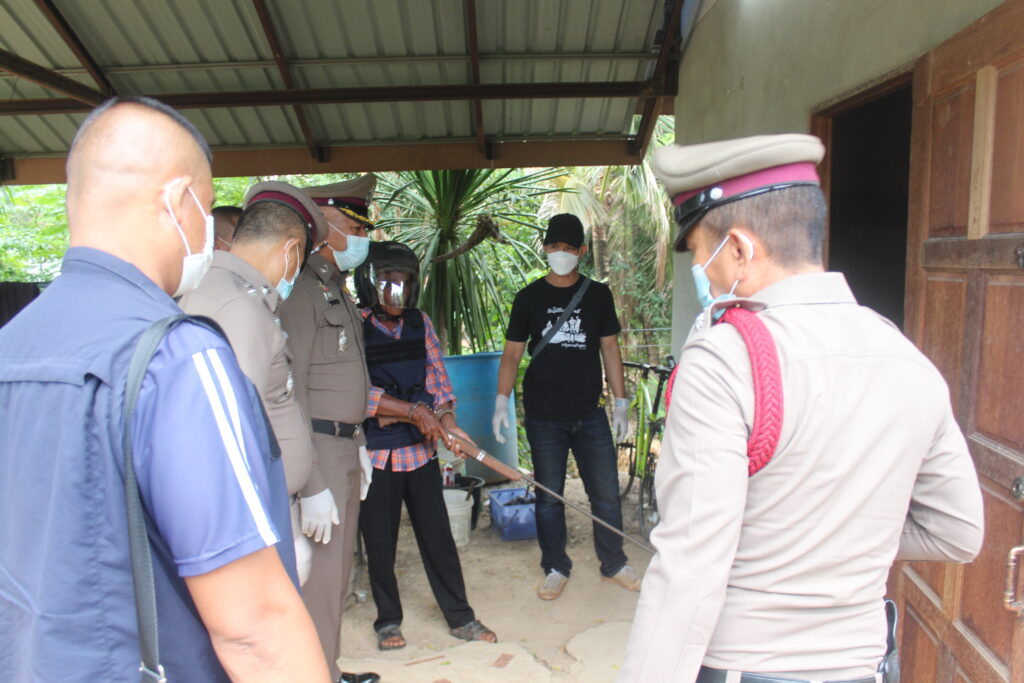 โดยสภาพศพผู้ตายบริเวณใบหน้าด้านขวา ถูกกระสุนปืนจ่อยิงจนเป็นรูโบ๋ ทะลุ ทีมสืบสวนสภ.ครบุรี จึงกระจายกำลังลงหาข่าวกระทั่งทราบตัวคนร้าย คือนายมน ลาดกระโทก ซึ่งเป็นชาวบ้านในละแวกนั้น จากนั้นทางเจ้าหน้าที่ตำรวจได้รวบรวมพยานหลักฐานขออนุมัติหมายจับจากศาลจังหวัดนครราชสีมา แต่ต่อมาเมื่อช่วงบ่ายวันนี้ผู้ก่อเหตุได้ประสานติดต่อขอเข้ามอบตัวในที่สุด