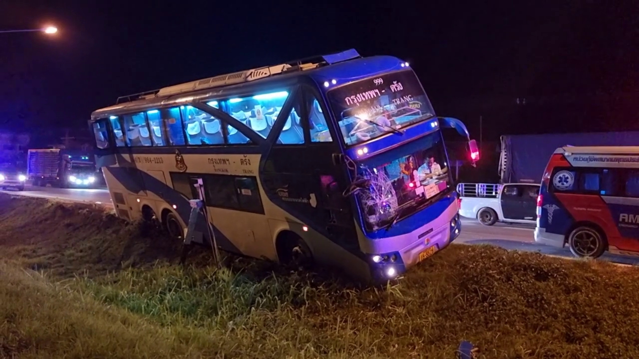 เมื่อเวลา 22.30 น.วันที่ 12 ก.ย. ร.ต.อ.ชำนาญ คงทอง พงส.เวร สภ.หลังสวน องหลังสวน จ.ชุมพร รับแจ้งอุบัติเหตุบนถนนเอเซีย41 เขตเทศบาลเมืองหลังสวน จึงรุดไปตรวจสอบพร้อมเจ้าหน้าที่ ที่เกิดเหตุที่ร่องกลางถนนสายเอเชีย 41 ช่องทางขาขึ้น กทม. หน้าที่ทำการหมวดการทางหลังสวน เขตเทศบาลเมืองหลังสวน อ.หลังสวน จ.ชุมพร ห่างจากสี่แยกหลังสวนเพียง 300 เมตร พบ ว่าริมร่องกลางถนน มีรถทัวร์ สังกัด บขส. สายตรัง- กทม เป็นรถวีไอพี 2 ชั้น 36 ที่นั่ง ทะเบียน 15-5528 กทม.ด้านหน้ารถพุ่งลงไปในร่องกลาง ท้องรถติดกับขอบคอนกรีต ด้านซ้ายของรถหน้าต่างช่วงกลางตัวรถแตกละเอียด เศษกระจกหล่นเกลื่อน