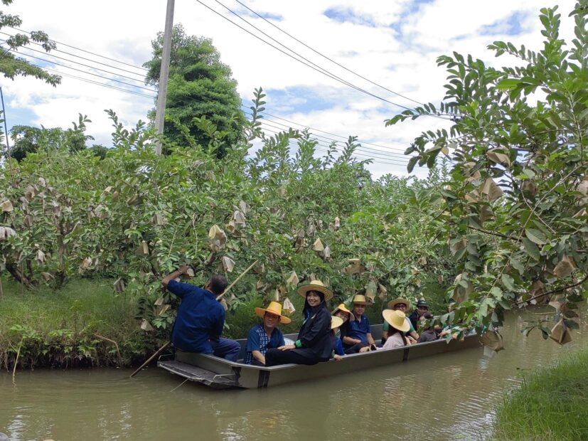 ผู้สื่อข่าวรายงานว่า สำนักงานเกษตรจังหวัดอุตรดิตถ์ จัดกิจกรรม Press Tour เพื่อสร้างการรับรู้งานส่งเสริมการเกษตร “ล่องเรือชมสวนฝรั่ง เพิ่มพลังด้วยชาบูน้ำมะพร้าว” ตามโครงการสร้างการรับรู้ข้อมูลข่าวสารในการส่งเสริมการเกษตร โดยลงพื้นที่วิสาหกิจชุมชนเกษตรกรรมร่ำรวย หมู่ที่ 3 ต.ท่ามะเฟือง อ.พิชัย จ.อุตรดิตถ์ มีพื้นที่กว่า 20 ไร่ ทำเกษตรแบบผสมผสานตามหลักปรัชญาเศรษฐกิจพอเพียง เป็นศูนย์เรียนรู้ท่องเที่ยวเชิงเกษตร ปลูกทุกอย่างที่กิน กินทุกอย่างที่ปลูก เลี้ยงทุกอย่างที่กิน กินทุกอย่างที่เลี้ยง ปลูกพืชสมุนไพรไว้เป็นยารักษาโรค เป็นโภชนาบำบัด เป็นส่วนประกอบในอาหาร มีพืชผักปลอดสารพิษ ปลอดสารเคมีไว้บริโภค เหลือกินก็แบ่งปันให้คนรอบข้าง เหลือแจกก็ขายสร้างรายได้ พร้อมกับการก่อตั้งวิสาหกิจชุมชนเกษตรกรรมร่ำรวย ที่รวบรวมสมาชิกทำการเกษตรต่างๆ ไว้ด้วยกัน เกษตรกรมีรายได้เพิ่มขึ้นอย่างต่อเนื่องตลอดทั้งปี