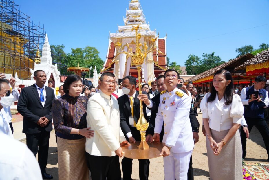 เมื่อวันที่ 3 ก.ย. วัดพระธาตุแช่แห้ง พระอารามหลวง จังหวัดน่าน จัดพิธียกช่อดอกไม้ทองคำประดับอัญมณี มหาบารมีถวายเป็นพุทธบูชา แด่องค์พระมหาธาตุเจ้าภูเพียงแช่แห้ง โดยมีพระราชศาสนาภิบาล เจ้าคณะจังหวัดน่าน เป็นประธานฝ่ายสงฆ์ นายวิบูรณ์ แววบัณฑิต ผู้ว่าราชการจังหวัดน่าน เป็นประธานฝ่ายฆราวาส โดยมีพลตํารวจเอก ดํารงศักดิ์ กิตติประภัสร์ ผู้บัญชาการตำรวจแห่งชาติ นางยุพา ทวีวัฒนะกิจบวร ปลัดกระทรวงวัฒนธรรม นายชัยพล สุขเอี่ยม อธิบดีกรมการศาสนา นายพนมบุตร จันทรโชติ อธิบดีกรมศิลปากร นางสาวฐิต์ณัฐ สมบัติศิริ ผู้ช่วยปลัดกระทรวงวัฒนธรรม วัฒนธรรมจังหวัด หัวหน้าส่วนราชการ ข้าราชการ เจ้าหน้าที่และพุทธศาสนิกชน เข้าร่วมพิธี