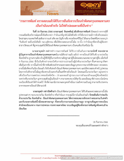 ขอบคุณข้อมูลจาก @ประชาสัมพันธ์ กรมราชทัณฑ์