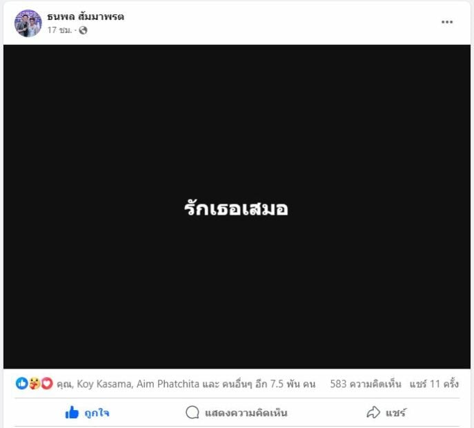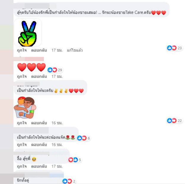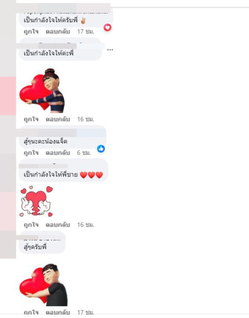 ล่าสุดหนุ่มแจ็คได้ออกมาเคลื่อนไหวแล้ว หลังสาวจ๊ะพูดไป ด้วยการโพสต์เฟซบุ๊กข้อความสุดแซ่บว่า “รักเธอเสมอ” จากนั้นไม่นานเพื่อนๆ ในวงการและแฟนๆ ก็มาไลก์และมอบกำลังใจให้ อาทิ สู้ๆ ครับไอ้น้องรักพี่เป็นกำลังใจให้น้องชายเสมอ! รักนะน้องชาย Take Care.ครับ, ทุกอย่างต้องผ่านไปด้วยดีนะค่ะ เป็นกำลังใจให้นะค่ะ, สู้ๆ นะคะเฮีย, สู้ๆ ครับ พี่เป็นกำลังใจให้เสมอครับ เป็นต้น