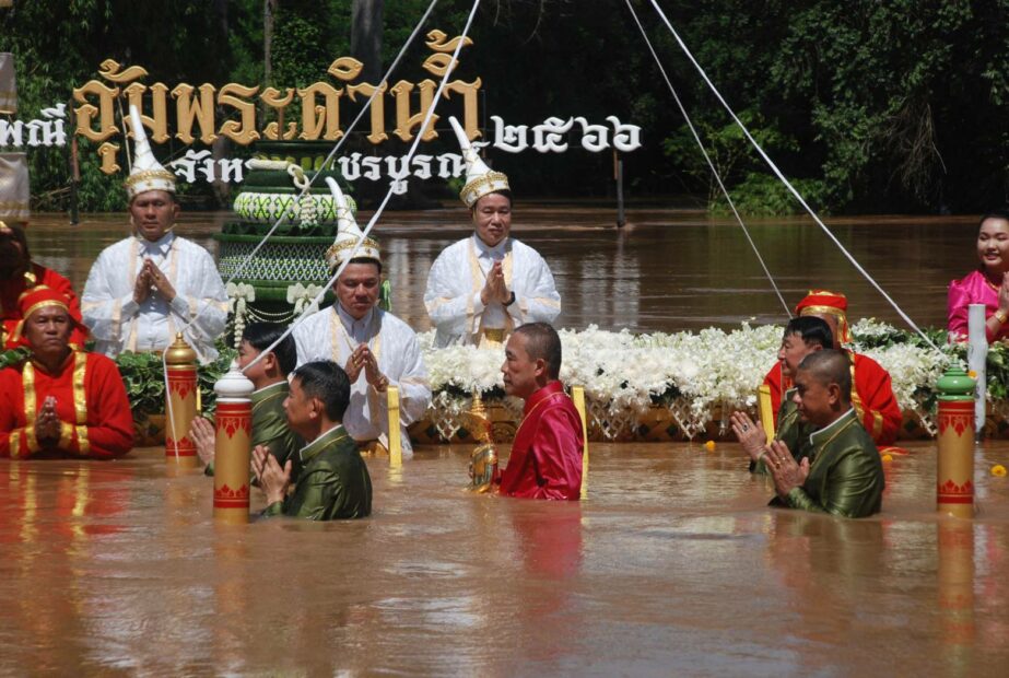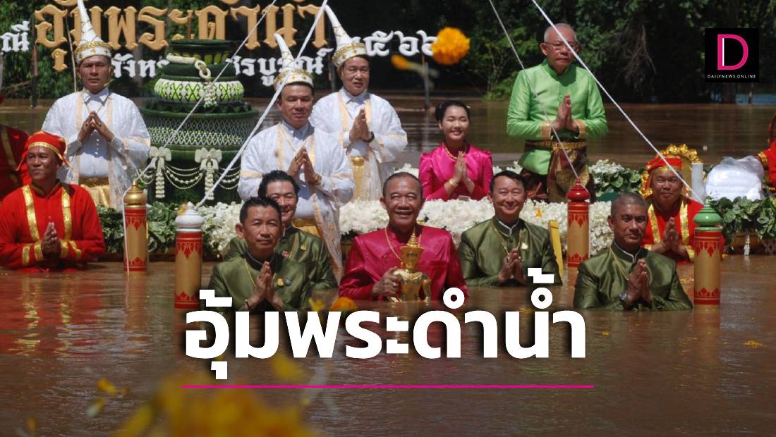 เมื่อวันที่ 14 ต.ค. ที่กลางลำน้ำป่าสัก ท่าน้ำวัดโบสถ์ชนะมาร ต.ในเมือง อ.เมือง จ.เพชรบูรณ์ นายกฤษณ์ คงเมือง ผวจ.เพชรบูรณ์ แต่งกายในชุดเจ้าเมืองโบราณพร้อมด้วยกรมการเมืองทั้ง 4 ร่วมกันอัญเชิญพระพุทธมหาธรรมราชา พระพุทธรูปคู่เมืองเพชรบูรณ์ ลงเรือเหมวารี แห่ทางน้ำพร้อมขบวนเรือต่างๆ ก่อนจะอัญเชิญองค์พระประกอบพิธีอุ้มพระดำน้ำ ตามประเพณีที่สืบทอดมาช้านาน โดยทำการอุ้มพระดำน้ำทิศใต้ 3 ครั้ง และทิศเหนือ 3 ครั้ง ตามผลการเสี่ยงทายปีนี้