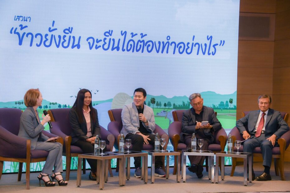 โดย รศ.ดร.ภูมิสิทธิ์ มหาสุวีระชัย มหาวิทยาลัยขอนแก่นและคณะ พร้อมทั้งการเสวนาหัวข้อ “ข้าวยั่งยืน จะยั่งยืนได้ต้องทำอย่างไร” โดย ดร.วัลลภ มานะธัญญา อุปนายกสมาคมผู้ส่งออกข้าวไทย ดร.อรรถวิชช์ วัชรพงศ์ชัย ผู้อำนวยการปฎิบัติการโครงการข้าว (GIZ) นายวนัส แต้ไพสิฐพงษ์ ที่ปรึกษาคณะกรรมการสำนักงานนวัตกรรมแห่งชาติ (องค์การมหาชน) และ นางสวณีย์ โพธิ์รัง ผู้แทนเกษตรกรปลูกข้าวยั่งยืน ร่วมเสวนา ณ ห้องประชุม Le Lotus1 โรงแรม Swissotel Bangkok Ratchada กรุงเทพมหานคร