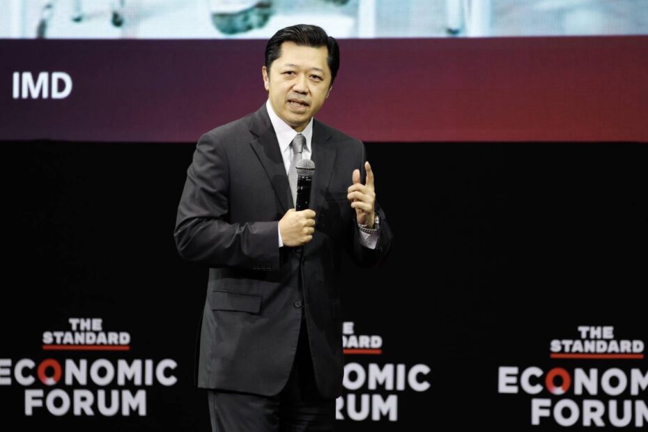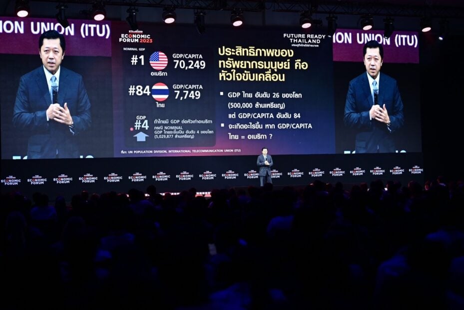 นายศุภชัย เจียรวนนท์ ประธานคณะผู้บริหาร เครือเจริญโภคภัณฑ์ (ซีพี) แสดงวิสัยทัศน์ในเรื่อง The Future of Education พลิกโฉมการศึกษาไทยเท่าทันอนาคต ภายในงาน THE STANDARD ECONOMIC FORUM 2023 FUTURE READY THAILAND รวมผู้นำระดับโลกและไทยจากทุกภาคส่วน จัดโดยสำนักข่าว THE STANDARD ที่ศูนย์การประชุมแห่งชาติสิริกิติ์ กรุงเทพฯ