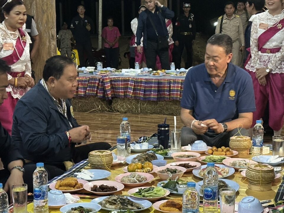 ภารกิจหลังจากนั้น นายเศรษฐา ทวีสิน นายกรัฐมนตรี และรมว.การคลัง พร้อมคณะ จะเดินทางไปที่วัดสุวรรณาราม ต.อุทัยสวรรค์ อ.นากลาง จ.หนองบัวลำภู โดยเยี่ยมชมกิจกรรมประเพณีวิถีพื้นถิ่น และร่วมกิจกรรมประเพณีกับประชาชน พร้อมร่วมรับประทานอาหารเย็น “พาแลง ฮักแพงหนองบัวลำภู” ซึ่งนายไชยา พรหมา รมช.เกษตรและสหกรณ์ ได้ควงนายกรัฐมนตรี นั่งล้อมวงเปิบข้าวเหนียวจิ้มแจ่วปลาร้า ซึ่งมีกับข้าวเป็นเมนูเด็ดอาหารอีสานบ้านเฮา อย่าง แจ่วพริกหยวกปลาร้า นึ่งปลานิล ต้มไก่บ้าน ท่ามกลางเสียงเพลงและการบรรเลงด้วยดนตรีโปงลางพื้นบ้านอีสานของเยาวชน สร้างอรรถรสและบรรยากาศอาหารพาแลงให้อร่อยลิ้นสุดแซ่บ ถือเป็นภาพจำที่งดงามและประทับใจ ในสายตาและในความรู้สึกของชาวหนองบัวลำภู เพราะเป็นครั้งแรกที่บุคคลระดับผู้นำของประเทศ จะมานั่งล้อมวงเปิบข้าวเหนียวจิ้มแจ่วปลาร้าสไตล์ลูกทุ่งกับ นายไชยา พรหมา สส.ขวัญใจชาวบ้าน และ รมช.เกษตรและสหกรณ์ รวมทั้งชาวบ้านอย่างเป็นกันเอง ถือเป็นการสานสร้างความสัมพันธ์ให้แน่นแฟ้น เหมือนปั้นก้อนข้าวเหนียวให้แนบแน่น ไม่มีวันเสื่อมคลาย