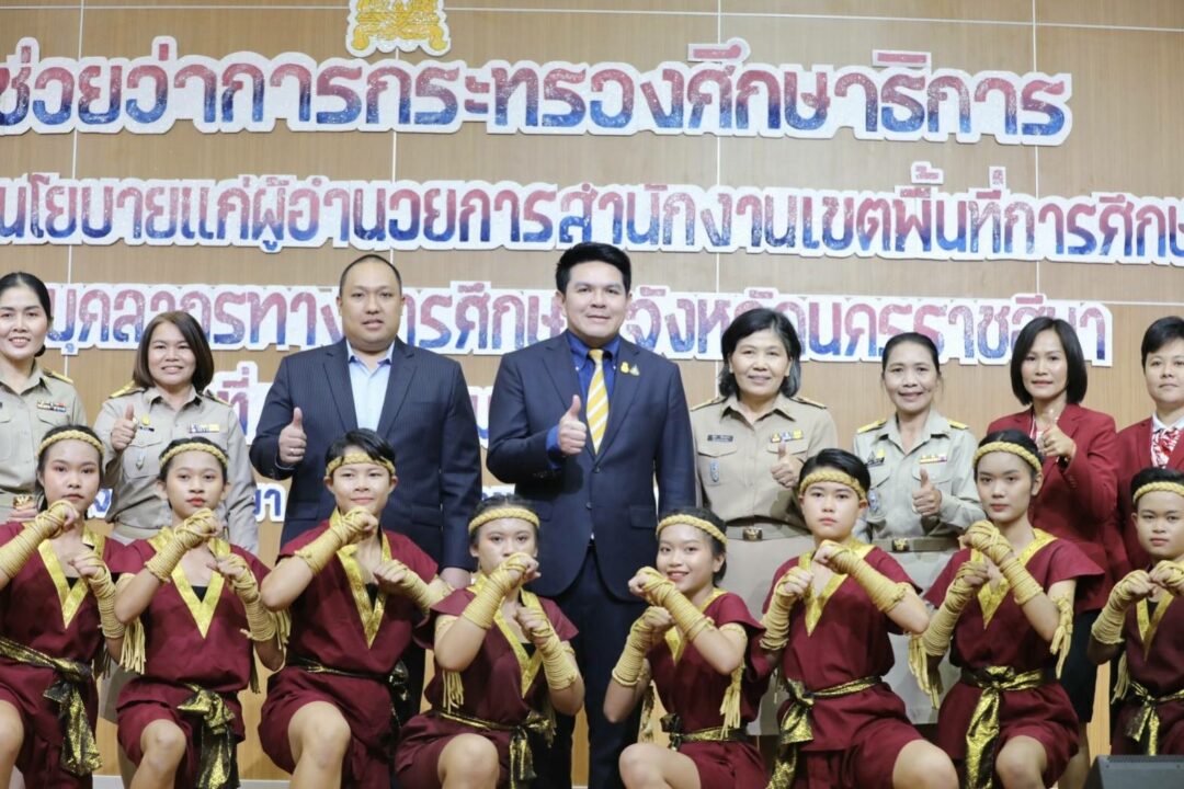 “การจัดงานในวันนี้นับว่าเป็นสิ่งที่ดี ที่ สพม. และ สพป.นครราชสีมา ได้เล็งเห็นถึงความสําคัญของการจัดการศึกษา อีกทั้งยังเป็นการสร้างสัมพันธภาพ ซึ่งจะก่อให้เกิดประโยชน์ต่อผู้เรียนในทุกๆ ด้าน และอีกสิ่งที่สำคัญของการลงพื้นที่คือการได้รับฟังเสียงสะท้อนและปัญหาอุปสรรคต่างๆ จากผู้อำนวยการเขตพื้นที่ ซึ่งถือว่ามีประโยชน์เป็นอย่างมาก หากเรื่องไหนสามารถทำได้ก็พร้อมที่จะดำเนินการ ซึ่งขณะนี้ ศธ. กำลังดำเนินการแก้ปัญหาการศึกษาและลดภาระครู เช่น การคืนนักการภารโรงสู่โรงเรียนกว่า 12,000 ตำแหน่ง เพื่อให้ครูมีเวลาสอนในห้องเรียนมากขึ้น, การใช้ครูธุรการร่วมกันในโรงเรียนเล็กๆ เพื่อแก้ปัญหาโรงเรียนที่ไม่มีครูธุรการ, การอุดหนุนอาหารกลางวันให้กับเด็ก ม.1-ม.3 ในโรงเรียนขยายโอกาส, การพิจารณาเงินอุดหนุนค่าเดินทางเด็กในอัตราใหม่ ให้สอดรับกับเศรษฐกิจในปัจจุบัน การสร้างบ้านพักให้กับบุคลากรทางการศึกษา เป็นต้น นอกจากนี้ ยังได้เน้นย้ำให้เขตพื้นที่ร่วมกันหาแนวทางการแก้ปัญหาการสอบ PISA รอบต่อไป ที่จะต้องร่วมมือกันทำให้ผลการสอบ PISA ดีขึ้น ขอขอบคุณและขอชื่นชม ท่านผู้บริหาร คณะครู นักเรียน ผู้มีส่วนเกี่ยวข้องทุกฝ่าย ที่ให้ความร่วมมือในการจัดกิจกรรมและการแสดงผลงานต่างๆ ในครั้งนี้” รมช.ศึกษาธิการ กล่าว