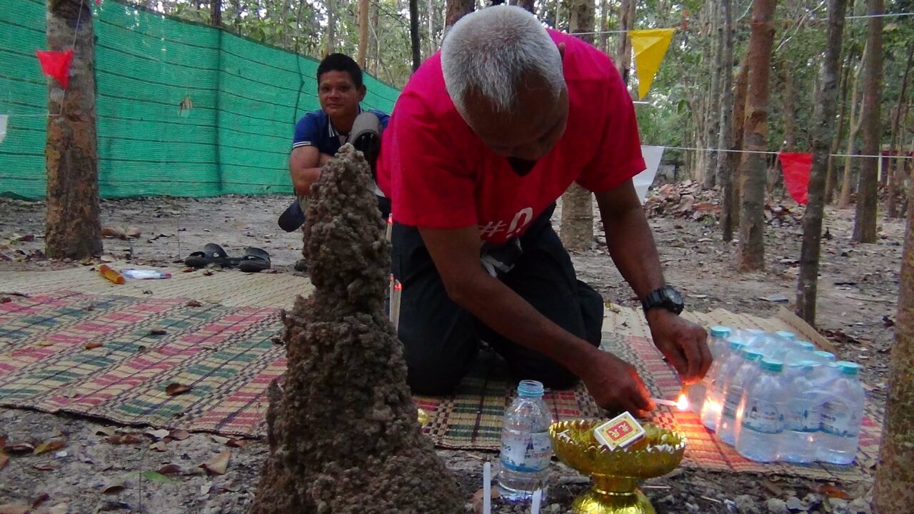 โดย พระมหาเกษมณี เตชปญฺโณ เจ้าอาวาส เปิดเผยว่า ได้ทำความสะอาดปัดกวาดที่บริเวณที่จะปฏิบัติธรรมของพระสงฆ์ ซึ่งเป็นโครงการปฏิบัติธรรมประจำปีของวัดป่าวิเวก ในวันที่ 20-24 ม.ค. ที่จะถึงนี้ ปรากฏว่าเจอจอมปลวกลักษณะคล้ายกับพระพุทธรูป เมื่อชาวบ้านมาเห็นต่างก็เชื่อว่าเป็นเรื่องมงคล เพราะทางวัดกำลังจะมีงานบุญ ถือเป็นนิมิตหมายที่ดี จึงได้กั้นบริเวณเอาไว้ก่อน