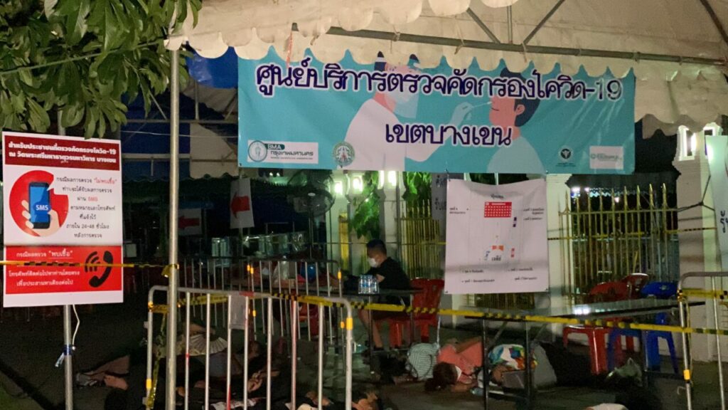 เมื่อวันที่ 8 ก.ค.64 ผู้สื่อข่าวรายงานว่า กลางดึกที่ผ่านมา ที่วัดพระศรีมหาธาตุวรมหาวิหาร บางเขน ถนนพหลโยธิน แขวงอนุสาวรีย์ เขตบางเขน กรุงเทพฯ โดยสำนักงานเขตบางเขน ร่วมกับศูนย์บริการสาธารณสุข 24 บางเขน และสปคม. กรมควบคุมโรค ได้จัดเป็นศูนย์บริการตรวจคัดกรองโควิด-19 เชิงรุกฟรี สำหรับประชาชนทั่วไป (ที่มีสัญชาติไทยเท่านั้น) โดยไม่เสียค่าใช้จ่าย เริ่มตั้งแต่วันที่ 5-11 ก.ค. ไม่เว้นวันหยุดราชการ ตั้งแต่ เวลา 08.00-16.00 น. รับวอล์กอินวันละ 900 ราย ผู้ที่รับการตรวจต้องนำบัตรประชาชน พร้อมสำเนา และปากกาส่วนตัวมาด้วย