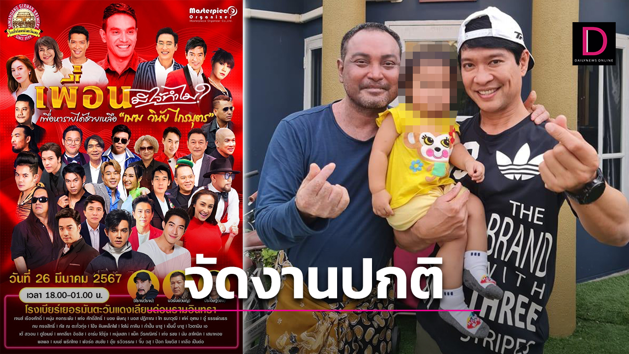 ความคืบหน้าล่าสุด “หนุ่ม-คงกระพัน แสงสุริยะ” ได้ออกมาอัปเดตถึงคอนเสิร์ต “เพื่อนมีไว้ทำไม?” ที่ได้รวมศิลปิน นักร้องยุค 90 ทั่วฟ้าเมืองไทย เพื่อร่วมกันจัดคอนเสิร์ตหารายได้ช่วยเหลือ “เมฆ-วินัย ไกรบุตร” จากการจำหน่ายบัตรทั้งหมด มอบโดยไม่มีการหักค่าใช้จ่ายใดๆ ทั้งสิ้น โดย หนุ่ม คงกระพัน ยืนยันว่า ยังจัดคอนเสิร์ตตามปกติ..