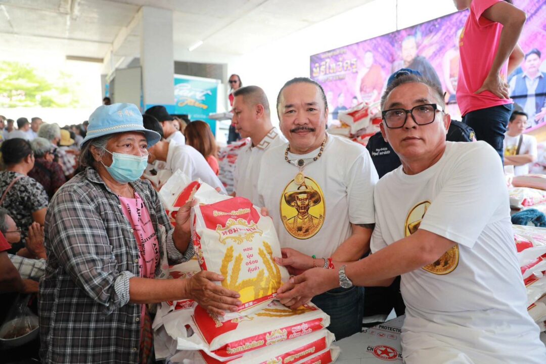 ซึ่งนายอัครวิทย์ รัตนประสิทธิ์ หรือวิทย์ วัดอรุณ เป็นตัวแทนคณะสงฆ์วัดอรุณราชวราราม นำพระผงของขวัญสมเด็จพระเจ้าตากสินมหาราช รุ่นมหาเศรษฐี วัดอรุณราชวราราม 500 เหรียญ พร้อมด้วยข้าวสารอาหารแห้งมาแจกให้กับคณะศิษย์ผู้ศรัทธาในพระองค์ท่านและแจกให้กับประชาชนที่มาร่วมพิธีไหว้ครูในครั้งนี้ด้วย โดยมี เป็ด เชิญยิ้ม, ถั่วแระ เชิญยิ้ม, เด๋อ ดอกสะเดา เป็นผู้ร่วมกันมอบ