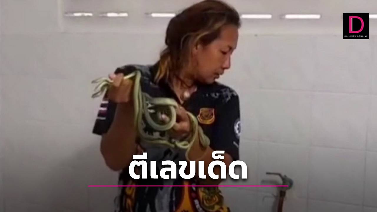 เบื้องต้นทีมกู้ภัยได้เข้าไปตรวจสอบพบว่าเป็นงูเขียวพระอินทร์ ซึ่งเป็นงูไม่มีพิษ มียาวประมาณ 60–70 เซนติเมตร ทั้งหมดรวมกัน 4 ตัว ทั้งนี้คาดว่างูเขียวพระอินทร์ได้หนีจากอากาศร้อนจัดในช่วงฤดูร้อน จากภายนอกเข้ามามาแอบซุกซ่อนตัวในห้องน้ำ ซึ่งเป็นที่มีอากาศเย็นเข้ามาผสมพันธุ์กัน เนื่องจากพบว่ามีงูเขียวตัวเมีย1 ตัว และตัวผู้ 3 ตัว จึงได้นำออกมาทั้งหมดและได้นำใส่กระสอบปุ๋ย ไปปล่อยคืนสู่ธรรมชาติหากินต่อไป