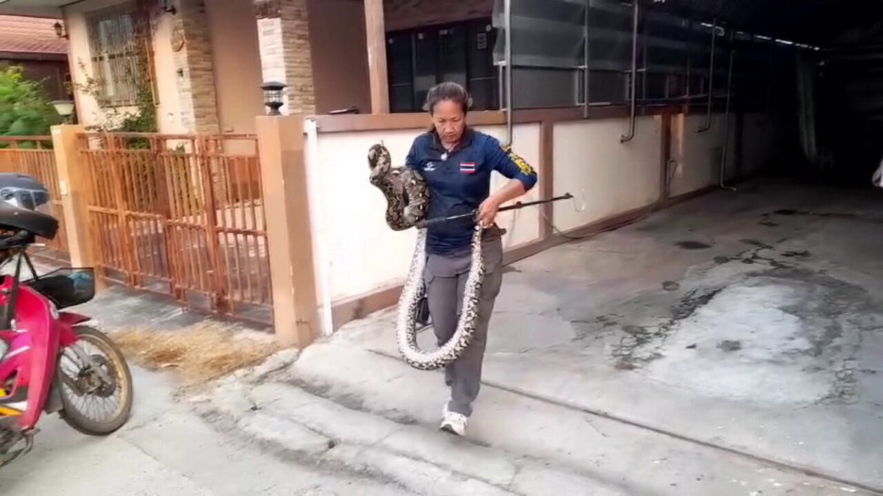 เมื่อวันที่ 8 เม.ย. เจ้าหน้าที่สมาคมกู้ภัยจังหวัดอ่างทอง ได้รับแจ้งขอความช่วยเหลือจับงูเหลือมตัวขนาดใหญ่ซุกอยู่ในบ้านเลขที่ 42/29 หมู่ที่ 1 ต.ป่างิ้ว อ.เมือง จ.อ่างทอง หลังได้รับแจ้ง จึงประสาน นางสาวรฐา ตะเพียนทอง เจ้าหน้าที่กู้ภัย ทีม Reptile Rescue Team ทีมช่วยเหลือสัตว์เลื้อยคลานจังหวัดอ่างทอง เข้าไปตรวจสอบ