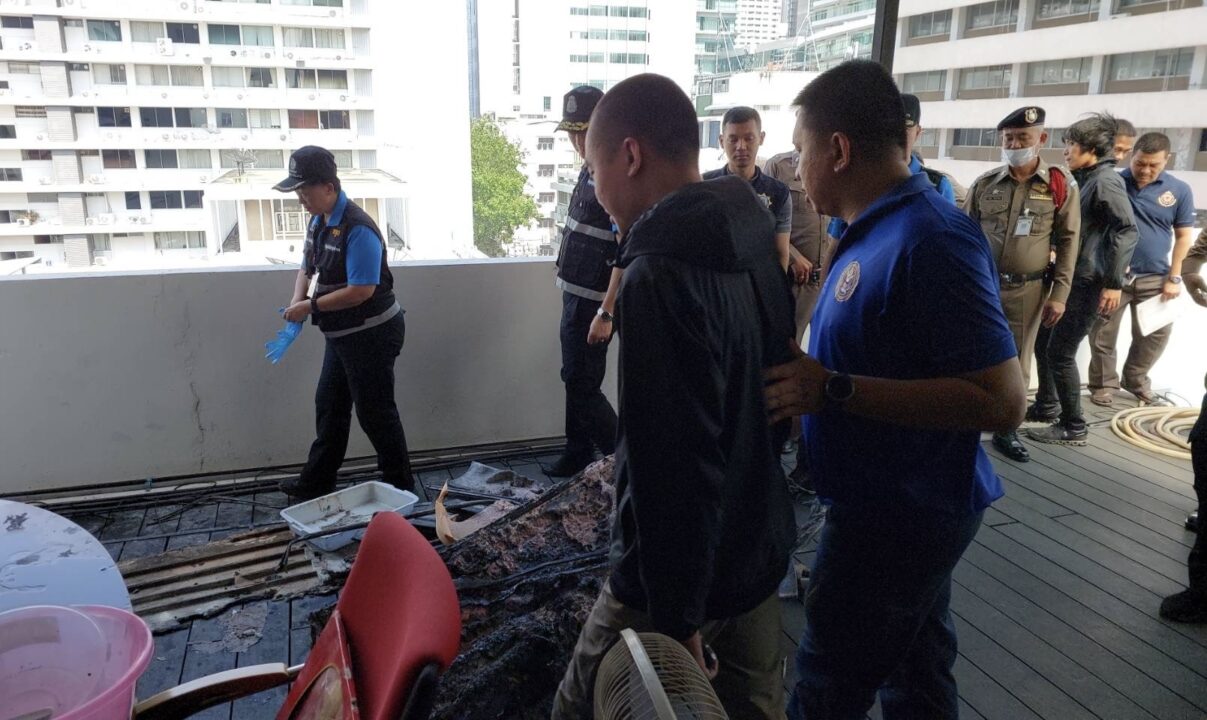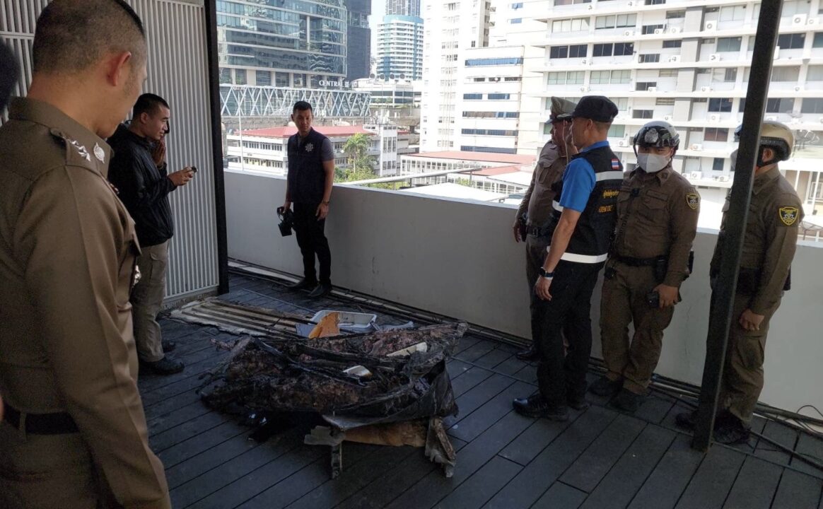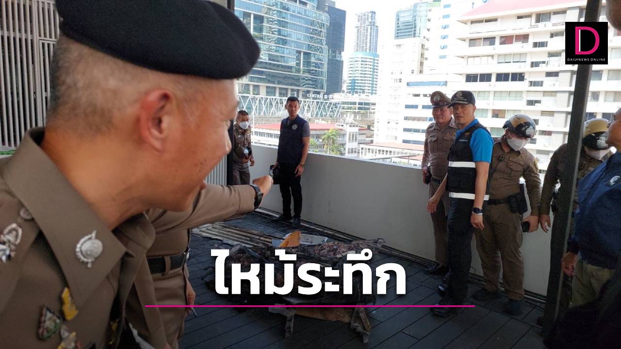 โดยเพลิงไหม้เกิดขึ้นประมาณ 10 นาที ก่อนที่เจ้าหน้าที่ตำรวจจะใช้ถังดับเพลิงควบคุมเพลิงได้ทันที ในกองเพลิงพบโซฟาเก่า เศษกองไม้ และเศษท่อน้ำพลาสติก ซึ่งภายหลังเกิดเหตุ พล.ต.ท.ไตรรงค์ ผิวพรรณ ผู้บัญชาการสำนักงานพิสูจน์หลักฐานตำรวจ และ พล.ต.ต.วาที อัศวุตมางกุร ผู้บังคับการกองพิสูจน์หลักฐานกลาง พร้อมเจ้าหน้าที่กองพิสูจน์หลักฐาน เข้าตรวจสอบที่เกิดเหตุ