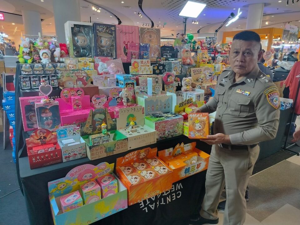 เมื่อวันที่ 15 พ.ค. พล.ต.ต.วิทยา ศรีประเสริฐภาพ ผบก.ปคบ. สั่งการ พ.ต.อ.พงษ์พันธ์ ศิริภัทรนุกุล ผกก.3 บก.ปคบ. พ.ต.ท.ชณิตพงศ์ ศิริเวช พ.ต.ท.ภูมิพัฒน์ บัวรัตนกุล พ.ต.ท.สถาพร มุสิกพงศ์ สว.กก.3 บก.ปคบ. สนธิกำลังร่วม เจ้าหน้าที่สำนักงานมาตรฐานผลิตภัณฑ์อุตสาหกรรม (สมอ.) เข้าตรวจยึดตุ๊กตาลาบูบู้ และตุ๊กตา Art toy กว่า 100 ตัว จากร้านค้าเช่าภายในห้างสรรพสินค้าชื่อดังแห่งหนึ่ง ในพื้นที่ จ.นนทบุรี จำนวน 11 ร้าน