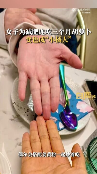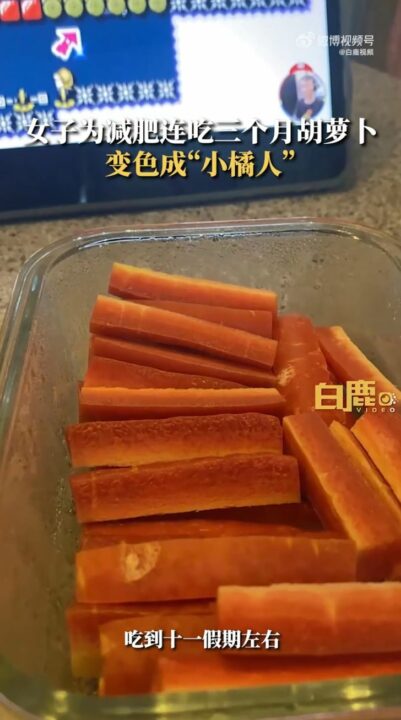 สื่อฮ่องกง hk01 เปิดเผยเรื่องราวของหญิงสาวชาวจีนคนหนึ่ง ซึ่งอาศัยอยู่ที่กรุงปักกิ่ง ประเทศจีน ซึ่งตัวกลายเป็นสีส้ม เพราะกินแครอทติดต่อกันเป็นเวลานาน 3 เดือน เพื่อหวังลดน้ำหนัก