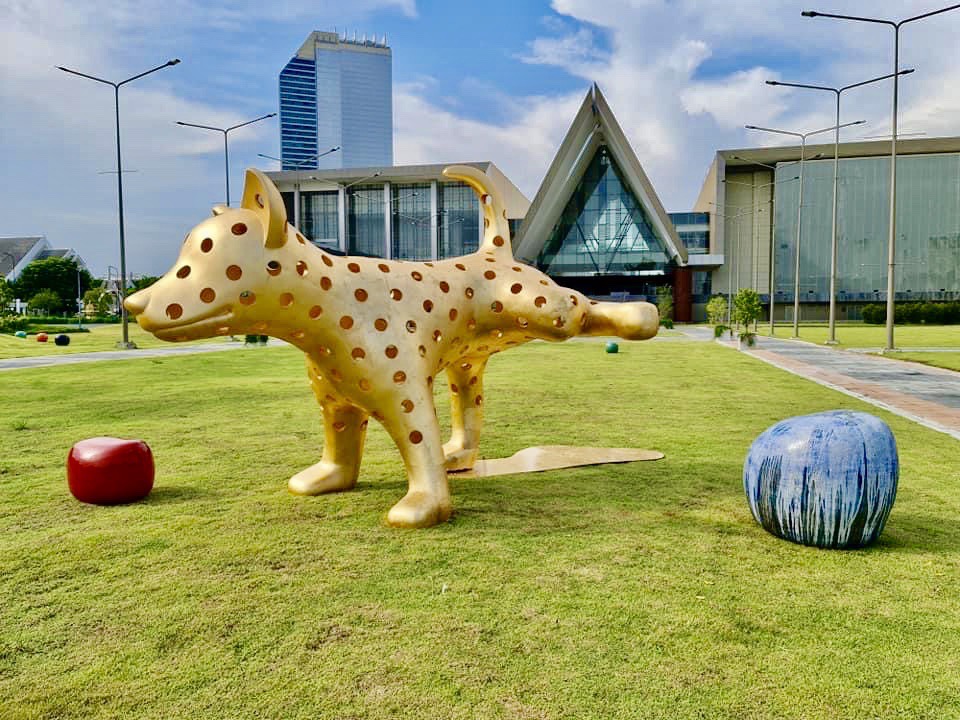 พื้นที่สนามหญ้าด้านหลัง หอศิลป์แห่งชาติ ถนนเทียมร่วมมิตร กระทรวงวัฒนธรรม มีชีวิตชีวาขึ้นมาทันที หลังจากมีประติมากรรม สุนัขพันธุ์ไทย นามว่า “ไอ้จุด” มาจัดแสดง