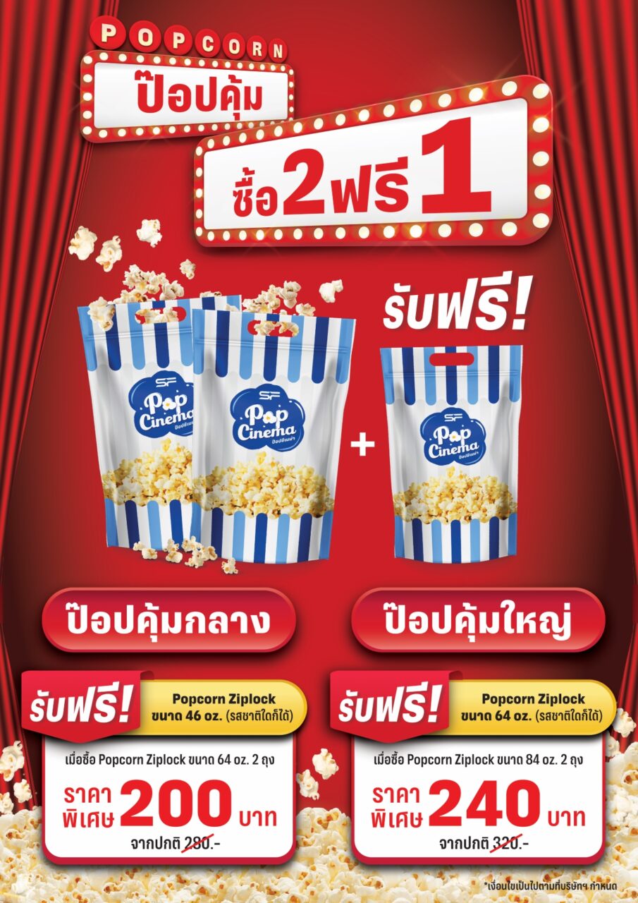 @ โรงภาพยนตร์ในเครือ เอส เอฟ เปิดบริการ “Pop Booth” พื้นที่ความอร่อยให้ลูกค้าสามารถเลือกซื้อป๊อปคอร์นจากเอส เอฟ ที่ทำสด พร้อมเสิร์ฟแสนอร่อยเหมือนซื้อจากโรงหนังได้ง่ายและสะดวกสบาย พร้อมส่งโปรโมชั่นป๊อปสุดคุ้มตลอดเดือนกรกฎาคมนี้กับ “ป๊อปคุ้มกลาง” ซื้อป๊อปคอร์นถุงซิปล็อค ไซซ์ L จำนวน 2 ถุง รับฟรี!! ป๊อปคอร์นถุงซิปล็อค ไซซ์ M จำนวน 1 ถุง ในราคาเพียง 200 บาท และ “ป๊อปคุ้มใหญ่” ซื้อป๊อปคอร์นถุงซิปล็อค ไซซ์ XL จำนวน 2 ถุง รับฟรี!! ป๊อปคอร์นถุงซิปล็อคไซซ์ L จำนวน 1 ถุง ในราคาเพียง 240 บาท ดูรายละเอียดเพิ่มเติมผ่านแอปพลิเคชัน SF Cinema, www.sfcinema.com