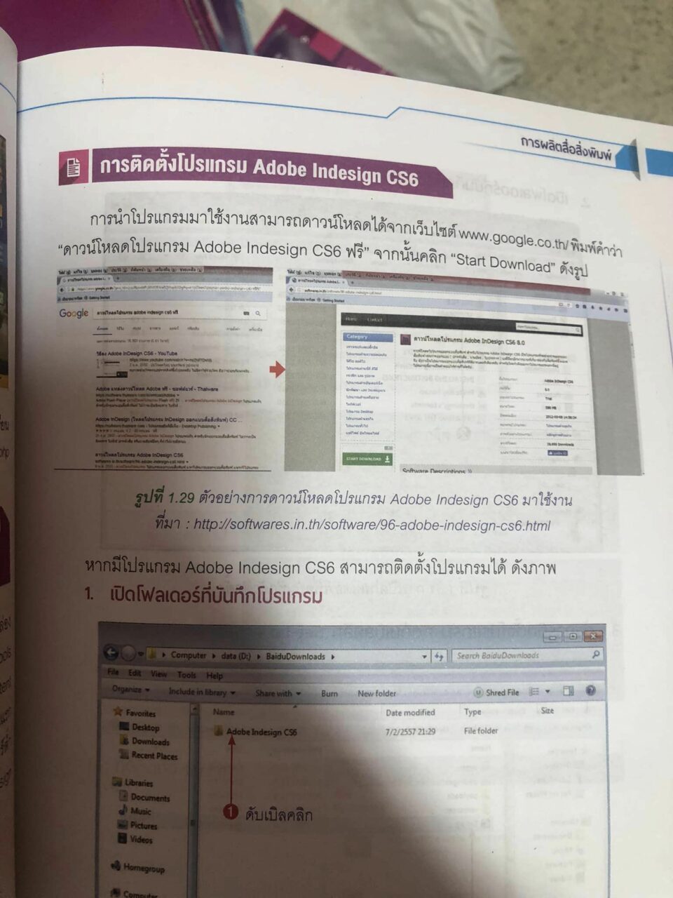 อย่างไรก็ตาม โพสต์ดังกล่าวยังแนบภาพเนื้อหาด้านใน ที่สอนการโหลดโปรแกรม Adobe InDesign CS6 พร้อมเน้นว่า “แบบฟรี” และแน่นอนว่าโปรแกรมดังกล่าวปกติแล้วนั้น หากต้องการติดตั้งต้องเสียเงินเท่านั้น ส่วนหนังสือที่กำลังเป็นประเด็นชื่อว่า “การผลิตสื่อสิ่งพิมพ์”