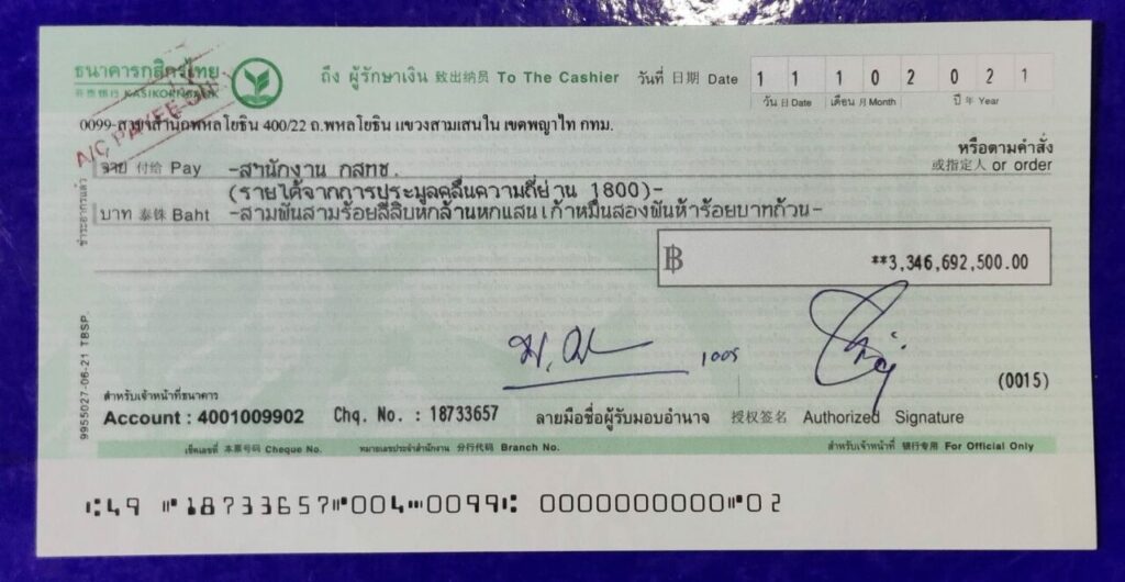 วันนี้ (11 ต.ค.) นายไตรรัตน์ วิริยะศิริกุล รักษาการแทนเลขาธิการคณะกรรมการกิจการกระจายเสียง กิจการโทรทัศน์ และกิจการโทรคมนาคมแห่งชาติ (รักษาการแทนเลขาธิการ กสทช.) เปิดเผยว่า วันนี้ (11 ต.ค.) บริษัท แอดวานซ์ ไวร์เลส เน็ตเวอร์ค จำกัด (เอดับบลิวเอ็น) ผู้ชนะการประมูลคลื่นความถี่สำหรับกิจการโทรคมนาคมย่าน 1800 MHz ชุดที่ 1 ช่วงความถี่ 1740-1745 MHz คู่กับ 1835-1840 MHz เมื่อปี 2561 ในราคาประมูลสูงสุด 12,511 ล้านบาท ได้นำเงินค่าประมูลงวดที่ 3 ซึ่งเป็นงวดสุดท้าย จำนวน 3,346.69 ล้านบาท (รวมภาษีมูลค่าเพิ่มแล้ว) มาชำระให้กับสำนักงาน กสทช. แล้ว ตามเงื่อนไขของการชำระเงินประมูล โดยเงินค่าประมูลดังกล่าว สำนักงาน กสทช. จะรีบนำส่งกระทรวงการคลังเพื่อเป็นรายได้ของแผ่นดินต่อไป