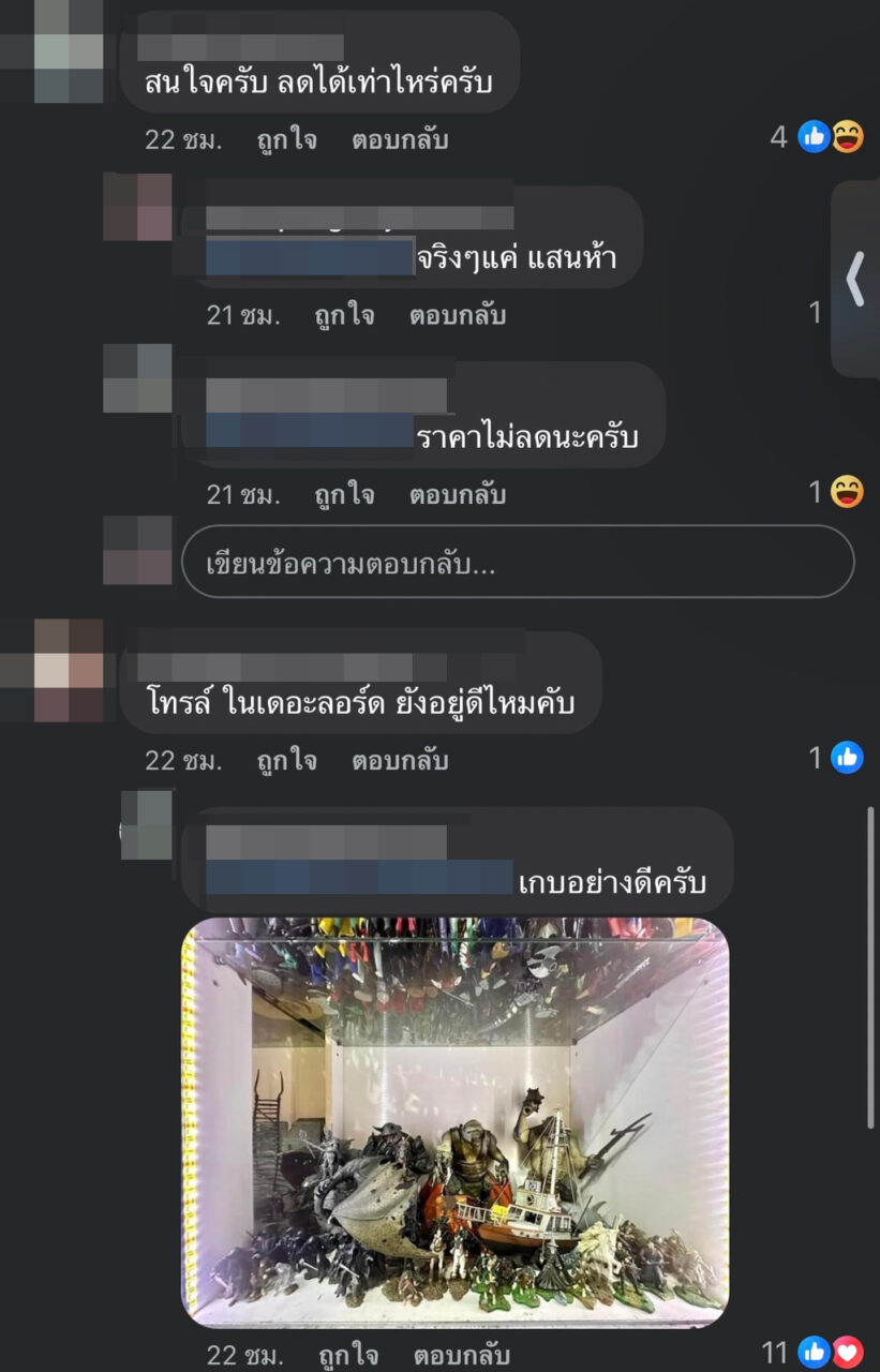 โดยเจ้าของโพสต์ระบุข้อความว่า “ขายของเล่นเหมาหมดทั้งบ้านนะครับ 15 ล้านบาท เก็บมา 10 กว่าปีครับ มีกล่องบ้างไม่มีกล่องบ้าง ตัวแรร์เพียบครับ ตามหามาทั่วโลกมารวมไว้ที่เดียว ทั้งฝั่งญี่ปุ่นและอเมริกาครับ ไม่แยกเลยครับ ถ้าขายแล้วไปทีเดียวหมดบ้าน ขายครับ แต่ถ้าไม่ไปเก็บต่อครับ เผื่อเเบ่งปันให้นักสะสมที่อยากเก็บดูแลต่อนะครับ ป.ล. ไม่ได้ร้อนเงินนะครับ แค่เบื่อๆ เผื่อมีคนมาเหมาครับ สนใจติดต่อผมมาได้นะครับ”