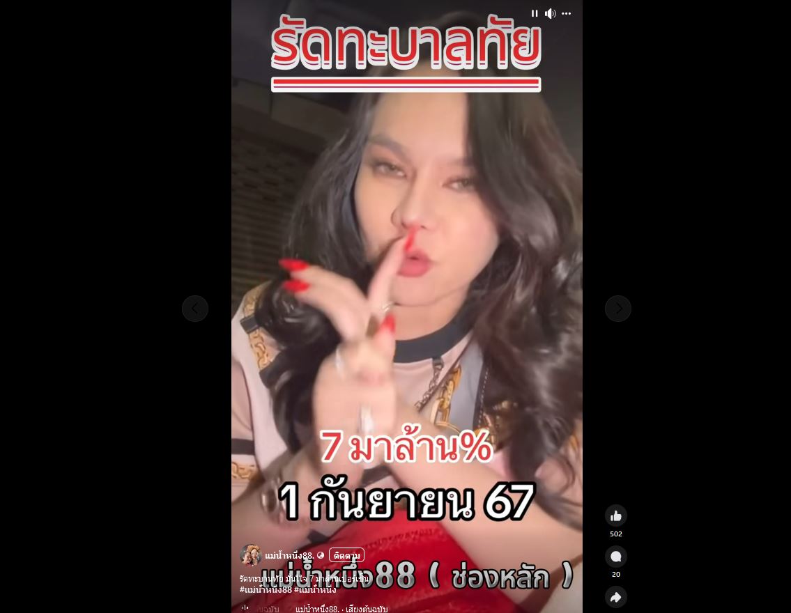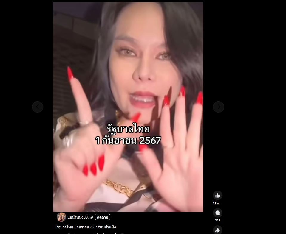 ส่วนคลิปสุดท้าย แม่น้ำหนึ่ง ได้ออกมาย้ำอีกทีว่า “รัฐบาลไทยงวดนี้มี 7 ล้านเปอร์เซ็นต์ งวดวันที่ 1 กันยายน พ.ศ.2567 หนูมั่นใจว่ามี 7 มาล้านเปอร์เซ็นต์ (พูดย้ำอีก ) หนูมั่นใจ 7 มาล้านเปอร์เซ็นต์