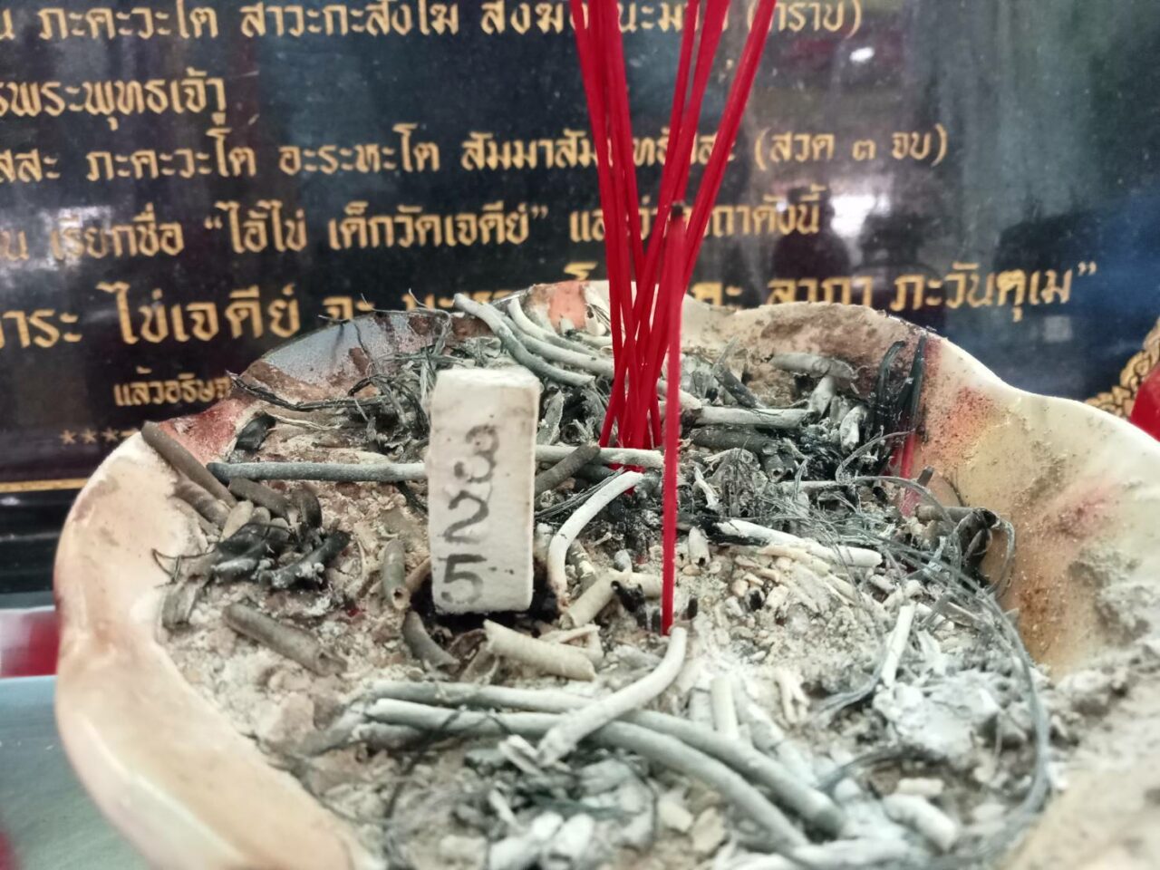 หลังจากเสร็จสิ้นพิธีผู้ที่ร่วมในพิธีได้แห่ไปส่องเลขธูป ซึ่งจุดระหว่างการประกอบพิธีอัญเชิญรูปเหมือนไอ้ไข่เด็กวัดเขาพระทอง ได้แก่เลข 325 และเลขป้ายทะเบียนรถ บพ 1205 นครศรีธรรมราช รวมทั้งหางประทัดแต่พบว่าหางประทัดถูกเพลิงไหม้เหลือเพียงเลข 8 เพียงตัวเดียวเท่านั้น โดยคอหวยได้นำเลขดังกล่าวไปเสี่ยงโชคในงวด 16 ก.ย.67