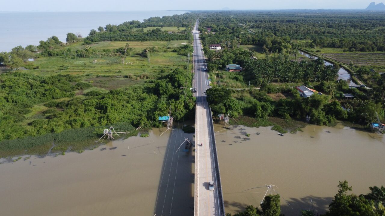 พร้อมก่อสร้างระบบระบายน้ำ ระบบไฟฟ้าแสงสว่าง ติดตั้งเครื่องหมายจราจร สิ่งอำนวยความปลอดภัย ก่อสร้างสะพานคอนกรีตเสริมเหล็ก 2 แห่ง และขยายสะพานคอนกรีตเสริมเหล็กเดิม 3 แห่ง เพื่อเชื่อมโยงชุมชนท้องถิ่นริมชายฝั่งทะเลสาบสงขลา พัฒนาเศรษฐกิจลุ่มน้ำทะเลสาบสงขลาส่งเสริมแหล่งท่องเที่ยวธรรมชาติสู่ต้นแบบการท่องเที่ยวยั่งยืน อาทิ การได้เห็นวิถีชุมชนพื้นบ้านที่มีการ”ยกยอ” คือ วิธีการจับปลาอย่างหนึ่งซึ่ง ยอหมายถึงเครื่องมือจับปลาลักษณะเป็นแหผืนสี่เหลี่ยม มุมทั้งสี่ผูกติดกับคันสำหรับยก เมื่อก่อนจะใช้วิธีนี้กันเพราะยกครั้งหนึ่งจะได้ปลาจำนวนมาก