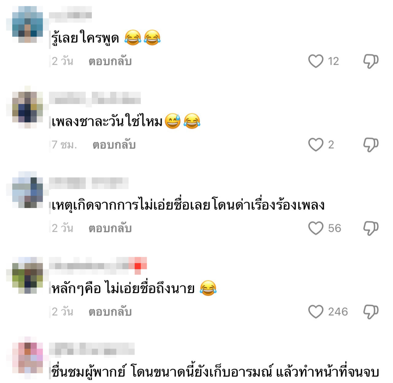 นอกจากนี้ ในคลิปมีเสียงของนักการเมืองคนหนึ่ง พูดออกไมค์ตำหนิทีมนักพากย์ พร้อมบอกว่า “เมื่อวานใครเป็นคนร้องเพลงลามกอนาจารยกมือ แม่ยายกับลูกเขย ใครเป็นคนร้อง อย่าร้องอีก มันไม่เหมาะสำหรับงานชิงถ้วยพระราชทาน หน้าศาลากลาง เป็นงานของราชการ เธอร้องได้ยังไง แสดงให้เห็นถึงวุฒิภาวะและความไม่มีคุณภาพ คือตลกได้บ้างไม่ได้ว่า แต่ว่าต้องดูกาลเทศะ ไม่ใช่งานวัด”