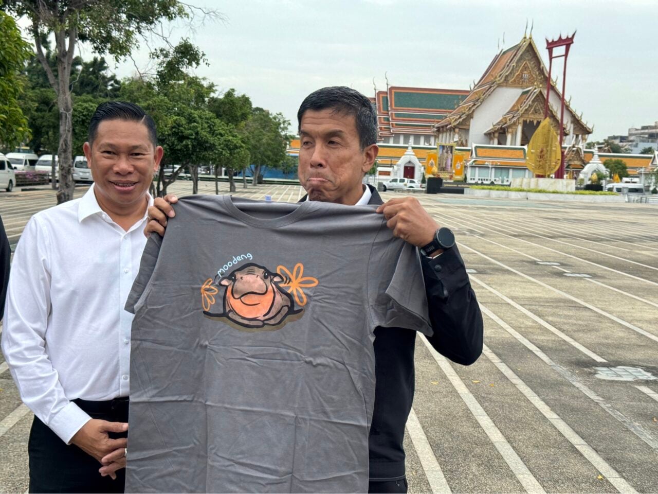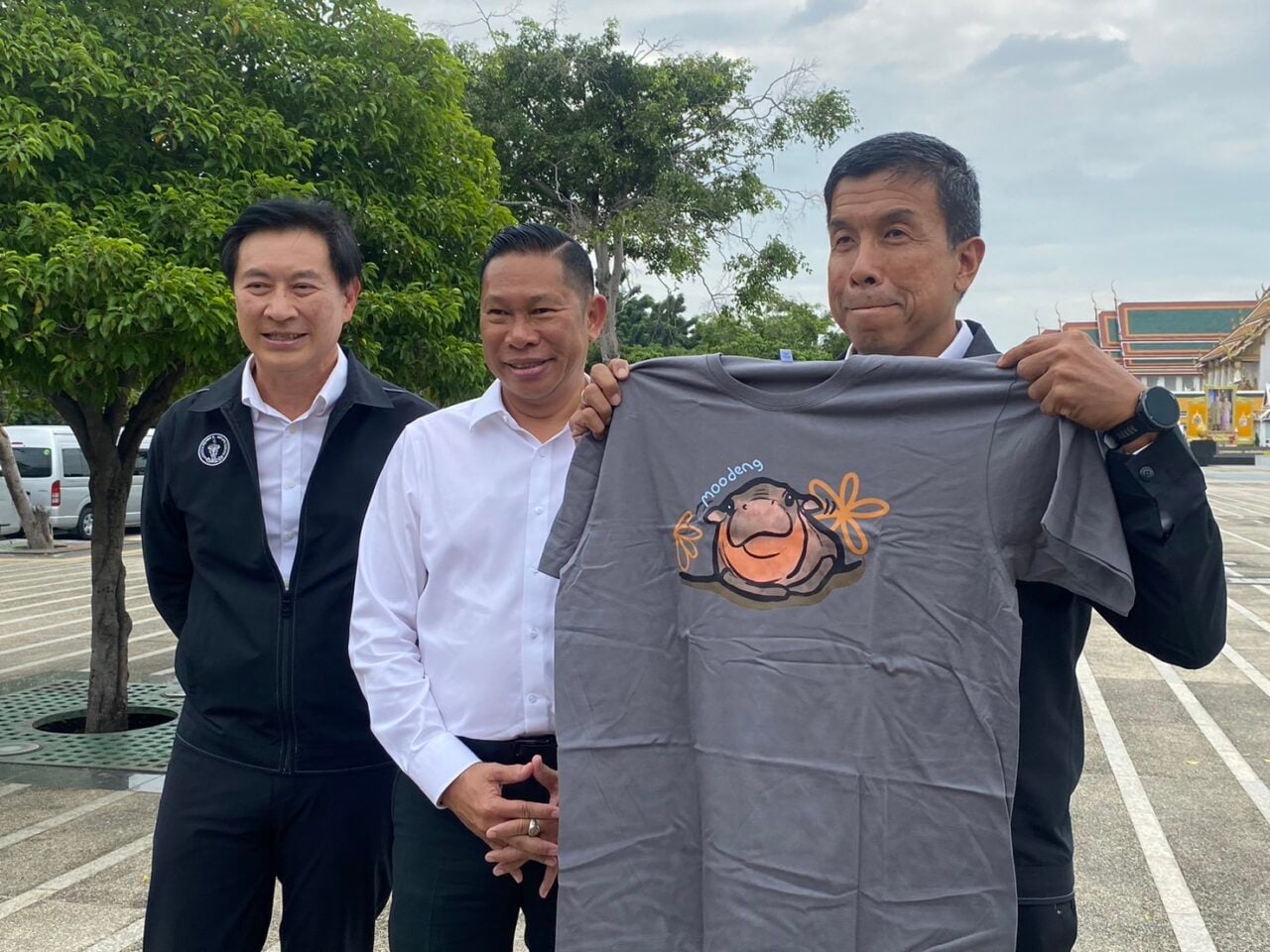 โดยช่วงท้ายนายชัชชาติ ได้ถ่ายรูปเป็นที่ระลึกกับตุ๊กตาปูนปั้นหมูเด้ง พร้อมชนหมัดกับนายณรงค์วิทย์ ถ่ายรูปกับเสื้อยืดสกรีนลายหมูเด้ง พร้อมกับทำหน้าเลียนแบบหมูเด้งด้วย.