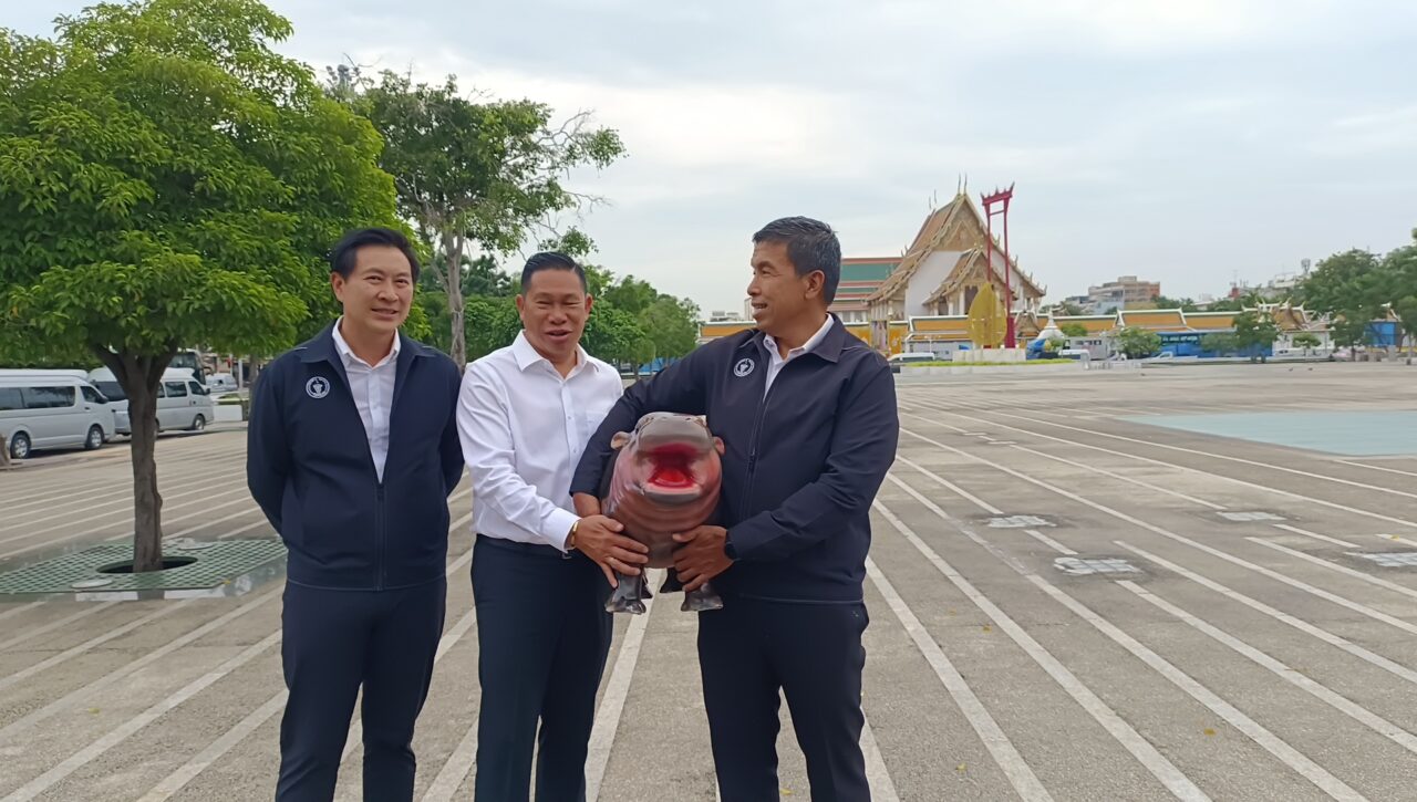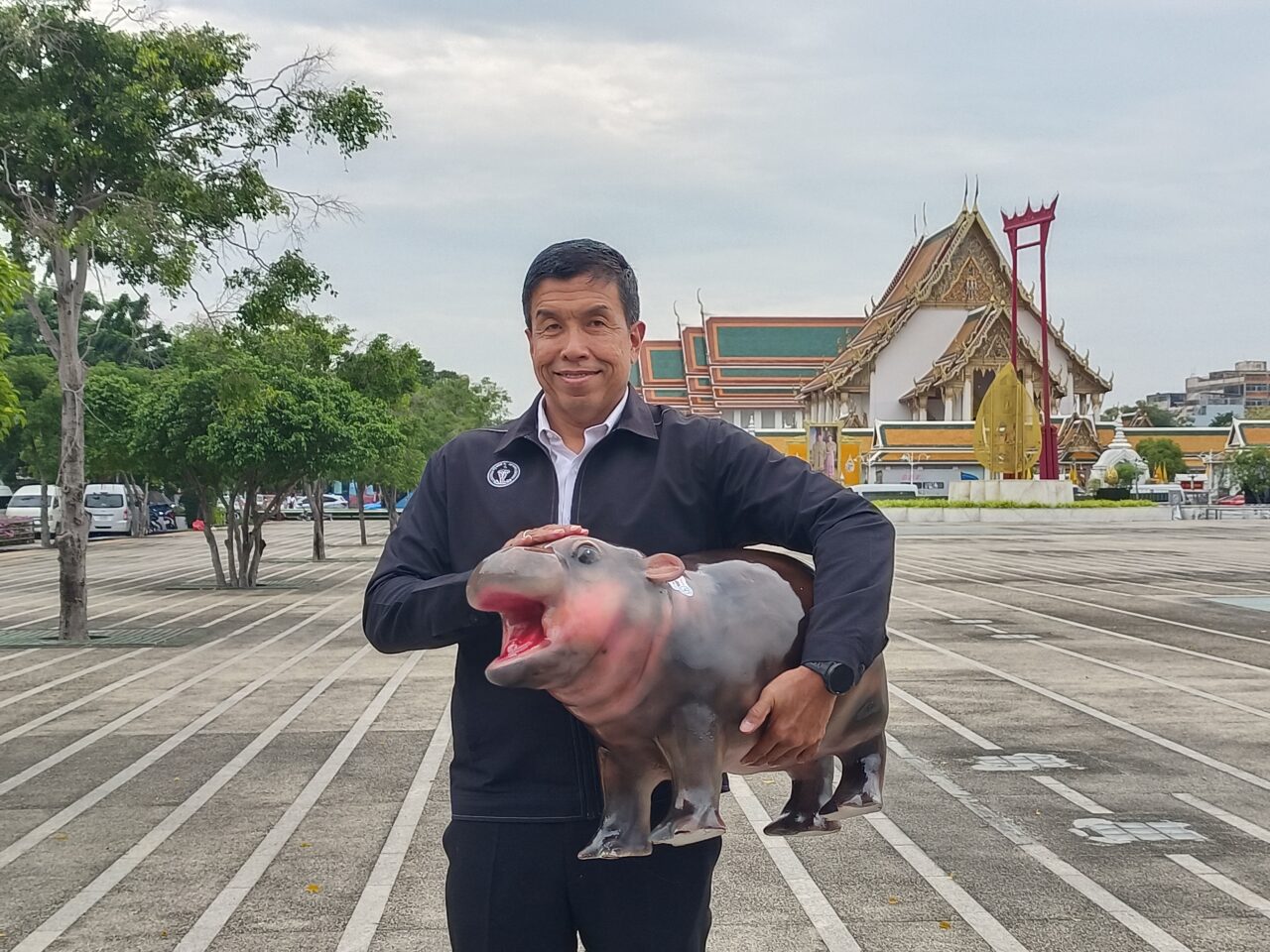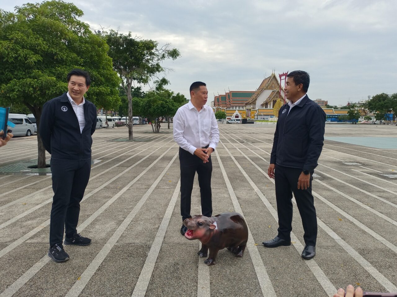 เมื่อวันที่ 7 พ.ย. ที่ลานคนเมือง ศาลาว่าการ กทม. (เสาชิงช้า) เขตพระนคร นายณรงค์วิทย์ ชดช้อย ผอ.สวนสัตว์เปิดเขาเขียว พาตุ๊กตาหมูเด้งมาพบ นายชัชชาติ สิทธิพันธุ์ ผู้ว่าฯ กทม. เพื่อเชิญชวนเด็กนักเรียนในสังกัด กทม. ไปเรียนรู้วิถีชีวิตของสัตว์ที่สวนสัตว์เปิดเขาเขียว