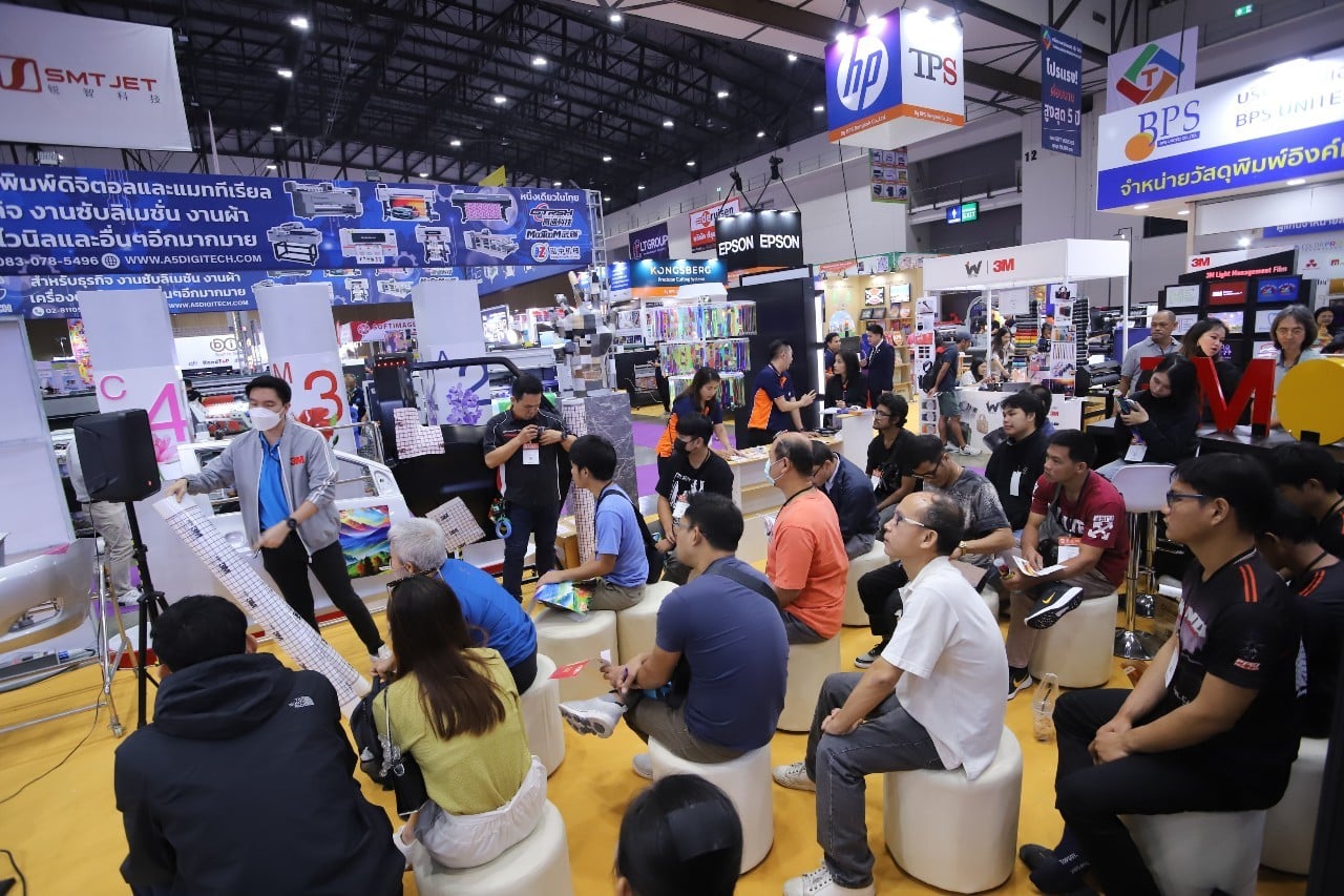 เมื่อวันที่ 7 พ.ย. 67 งานแสดงเทคโนโลยีการพิมพ์ระบบดิจิทัล 3 งานใหญ่ประจำปี Bangkok Ad & Sign Expo 2024 พร้อม Bangkok Digital Textile Print Expo 2024 และ Bangkok Pack & Label Expo 2024 เริ่มวันแรกคึกคัก ภายในงานพบสินค้าและบริการ เทคโนโลยีใหม่ล่าสุด สำหรับงานผลิตป้าย สื่อโฆษณานอกบ้าน งานพิมพ์ผ้า เสื้อผ้าชุดกีฬา งานบรรจุภัณฑ์และฉลากสินค้า จากบริษัทตัวแทนจำหน่ายชั้นนำของเมืองไทยและต่างประเทศ กว่า 250 บูธ 1,000 แบรนด์สินค้า รวมไปถึงงานสัมมนาและเวิร์คช็อปหลากหลายกิจกรรมต่อยอดองค์ความรู้ ทำให้ธุรกิจการผลิตสื่อโฆษณามีมูลค่าสูงขึ้น ณ บริเวณ TABDA Activity Zone ณ ฮอล์ 6-7 อิมแพ็ค เมืองทองธานี