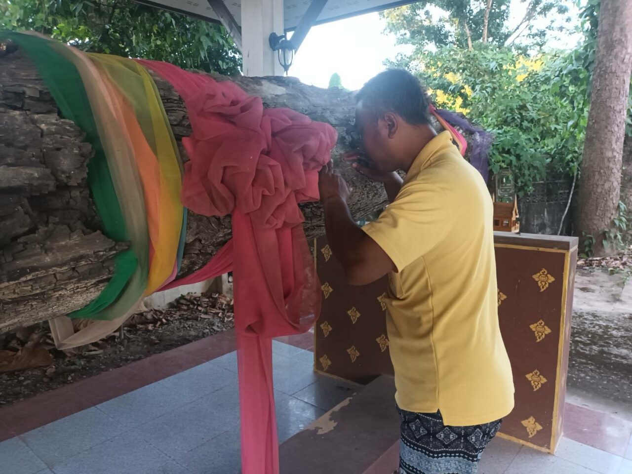 จากนั้นนักแสวงหาโชคลาภ ก็ได้ไปจุดธูป จุดเทียน ขอเลขเด็ดจากต้นแม่ตะเคียนทองภายในศาลา ลำต้นขนาด 3 คนโอบ ยาวประมาณ 60 เมตร ซึ่งก็ได้เอาแป้งมาทาลูบขอเลขเด็ดกันจนต้นแม่ตะเคียนทองขาวไปด้วยด้วยแป้ง ซึ่งทุกคนต่างก็ดีใจที่เห็นเลข 7 เด่นขึ้นมาอย่างชัดเจน แล้วก็ตามมาด้วยเลข 3 กับเลข 5 ทำให้ทุกคนมีความมั่นใจว่า เลข 7 คือ เลขเด่น เลยเอามาจับคู่กันได้ 37, 73, 35, 53