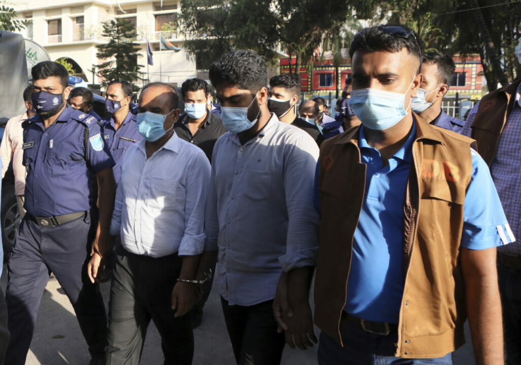 สารวัตรตำรวจชเยดุล อลัม ตำรวจพื้นที่เขตนารายานกานจ์เปิดเผยว่า ตำรวจได้จับกุมผู้ต้องสงสัยไว้ได้ 8คนแล้วโดยแจ้งข้อหาฆาตกรรม ส่วนรัฐมนตรีมหาดไทยนายอซาดุซซมาน ข่าน กล่าวว่า หนึ่งในผู้ถูกจับกุมตัวมีผู้อำนวยการกลุ่มบริษัทซาจีบซึ่งเป็นเจ้าของโรงงานรวมอยู่ด้วย แต่เขาไม่ได้เปิดเผยรายละเอียดนอกเหนือจากนี้ บอกแต่ว่าผู้รับผิดชอบจะต้องถูกลงโทษตามกฎหมาย และกล่าวขณะไปตรวจสอบที่เกิดเหตุว่าเป็นการฆาตกรรม นอกจากนั้นศาลในกรุงธากายังได้สั่งให้ตำรวจควบคุมตัวผู้ต้องสงสัยไว้ระหว่างการสอบสวน