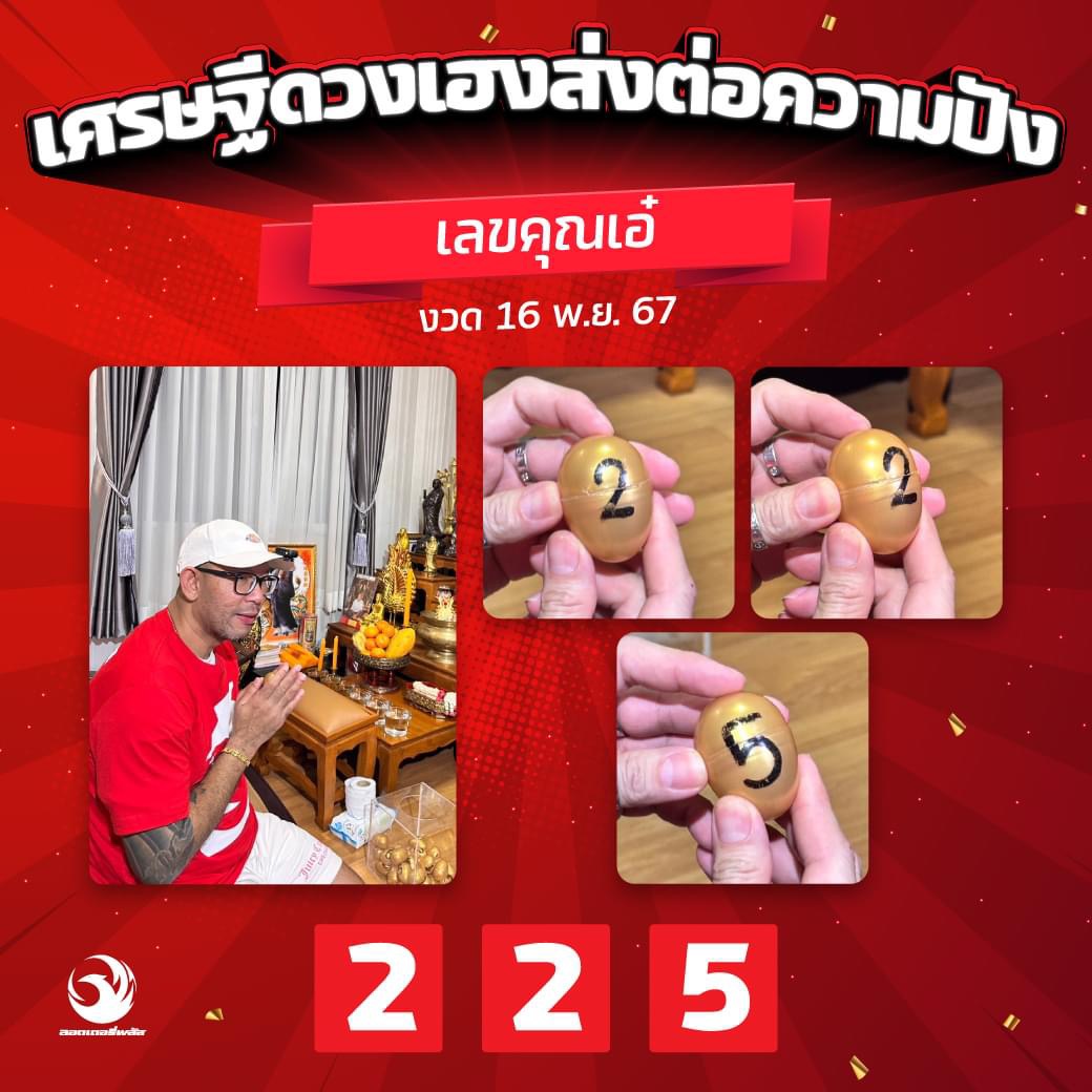 ล่าสุด ทางเพจเฟซบุ๊กรายหนึ่งได้ออกมาโพสต์ข้อความเปิด เลขเด็ดของ เอ๋ เชิญยิ้ม พร้อมทั้งระบุแคปชั่นว่า ”เศรษฐีดวงเฮงส่งต่อความปัง เลขจากคุณเอ๋ เจ้าของรางวัลที่ 1 งวด 16 พ.ย. 67“ อีกทั้งแนบรูปภาพเลขเด็ดอีกด้วย ซึ่งเลขที่เผยในภาพคือ 2 2 5