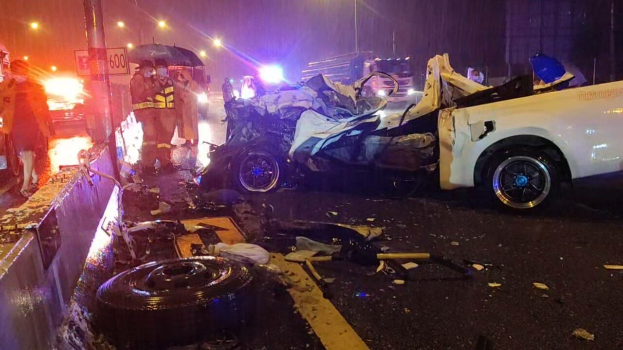 เมื่อวันที่ 11 ก.ค. พ.ต.ท.รัตพล วรรณะ สว.สอบสวน สถานีย่อยเขาเขียว อ.ศรีราชา จ.ชลบุรี ได้รับแจ้งเกิดอุบัติเหตุรถกระบะพุ่งชนอัดท้ายรถบรรทุก 6 ล้อ มีผู้เสียชีวิตทั้งหมด 3 ราย บนถนนมอเตอร์เวย์ สาย 7 ตอนที่ 2 ช่วงสะพานสวนผีเสื้อ หมู่ 9 ต.บางพระ อ.ศรีราชา จึงรีบรุดไปตรวจสอบพร้อมหน่วยกู้ภัยเพียวเยี้ยงไท้ ศรีราชา
