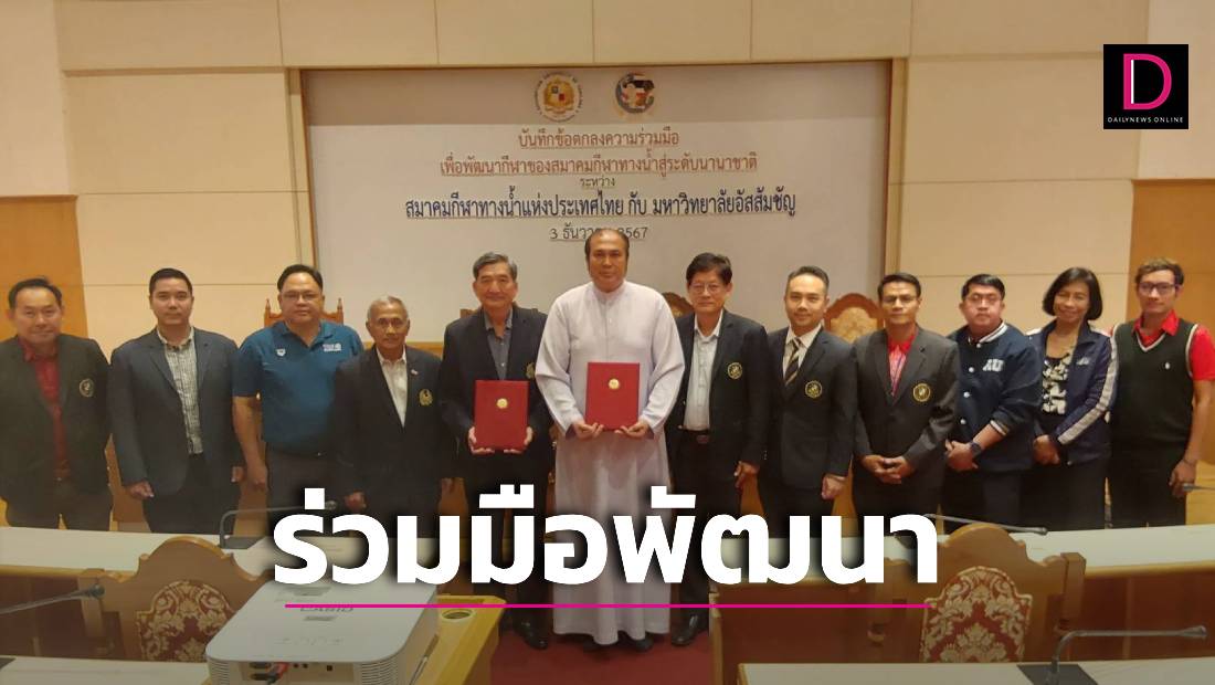 สมาคมกีฬาทางน้ำแห่งประเทศไทย ร่วมกับ มหาวิทยาลัยอัสสัมชัญ วิทยาเขตสุวรรณภูมิ ลงนามบันทึกข้อตกลงความร่วมมือ (MOU) เพื่อพัฒนากีฬาของสมาคมกีฬาทางน้ำO สู่ระดับนานาชาติพร้อมกับการใช้สถานที่เพื่อการฝึกซ้อมกีฬากระโดดน้ำ เป็นระยะเวลา 4 ปี โดยงานนี้ได้รับเกียรติจาก พลเอก ศิริชัย ดิษฐกุล อุปนายกสมาคมกีฬาทางน้ำแห่งประเทศไทย พร้อมด้วย พลเอก เจริญ นพสุวรรณ เลขาธิการสมาคมกีฬาทางน้ำแห่งประเทศไทย, ภราดา ดร.ศิริชัย ฟอนซีกา อธิการบดีมหาวิทยาลัยอัสสัมชัญ วิทยาเขตสุวรรณภูมิ รวมถึง อ.สมพล ณ สงขลา รองอธิการบดีฝ่ายกฏหมายและสิทธิประโยชน์ และแขกผู้มีเกียรติร่วมเป็นสักขีพยาน ที่ห้องวิเศษศรีสมุทร อาคาร The Cathedral of Learning มหาวิทยาลัยอัสสัมชัญ วิทยาเขตสุวรรณภูมิ