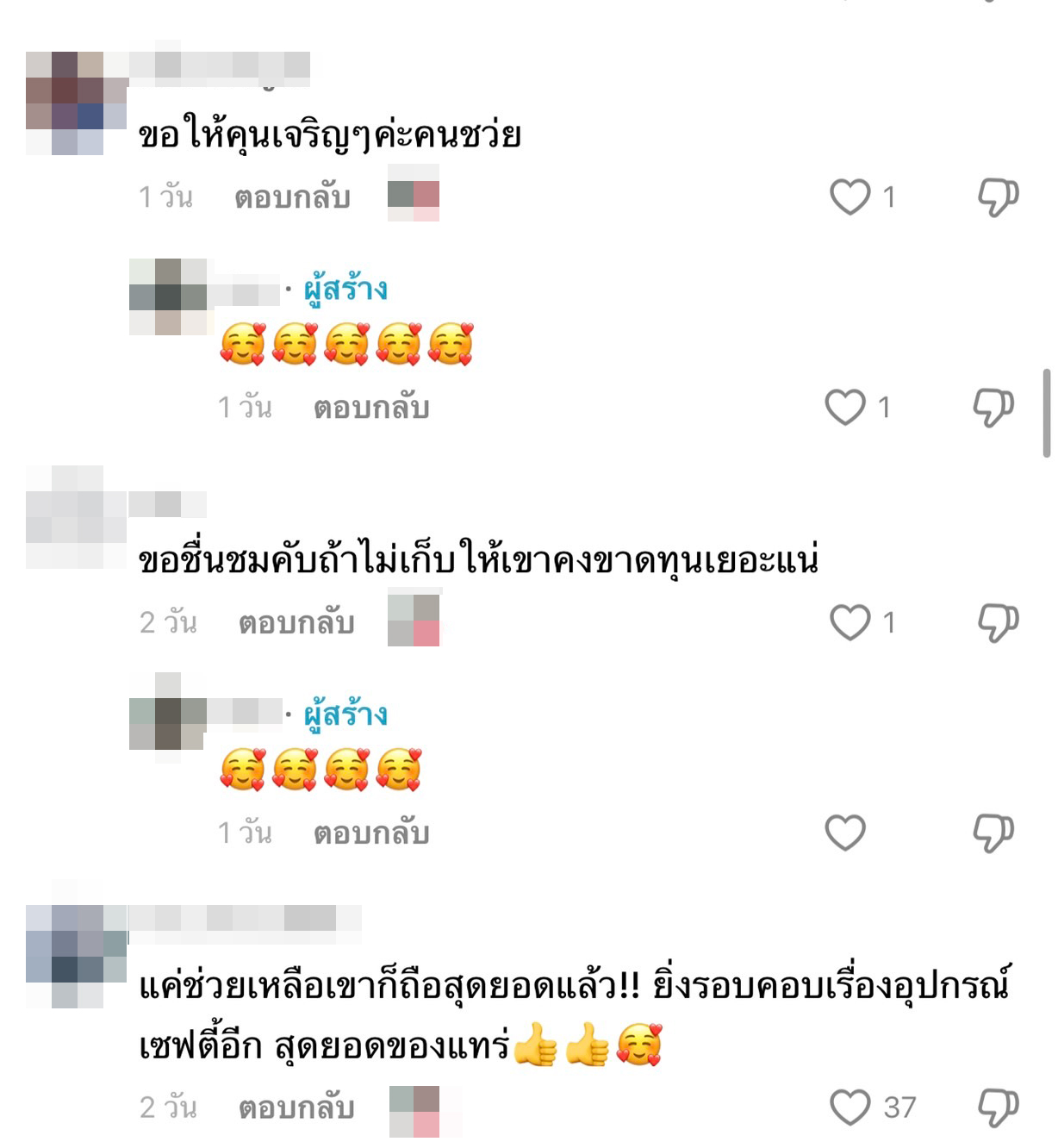 อย่างไรก็ตาม เมื่อเรื่องราวดังกล่าวถูกเผยแพร่ออกไป ต่างมีชาวเน็ตเข้ามาแสดงความคิดเห็นกันเป็นจำนวนมาก โดยชาวเน็ตส่วนใหญ่ต่างบอกว่า “ขอชื่นชมครับ ถ้าไม่เก็บให้เขาคงขาดทุนเยอะแน่, แค่ช่วยเหลือเขาก็ถือว่าสุดยอดแล้ว ยิ่งรอบคอบเรื่องอุปกรณ์เซฟตี้อีก สุดยอดของแท้, ใจพี่หล่อมากค่ะ, เยี่ยมเลย ขอบคุณที่มีน้ำใจช่วยเหลือกัน ขอให้เจริญๆ นะคะ” อีกด้วย..