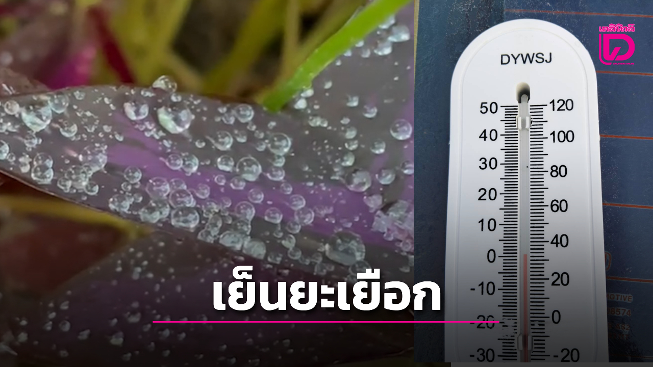 ส่วนในพื้นที่อำเภอเมืองเลย อากาศหนาวจัดในช่วงเช้า 6-7 องศาฯ มีภาพน้ำค้างจะกลายเป็นเกล็ดน้ำแข็ง ที่จับเป็นก้อนเล็กๆ สีขาวโพลนบนใบไม้ ดอกไม้ สลับกับสีม่วงเห็นได้ชัดเจน