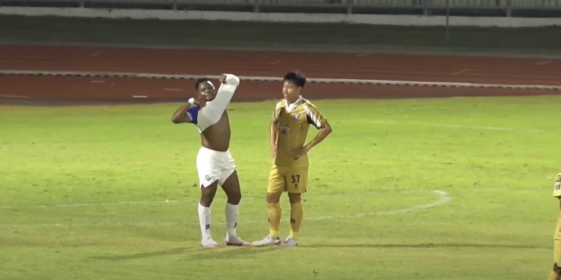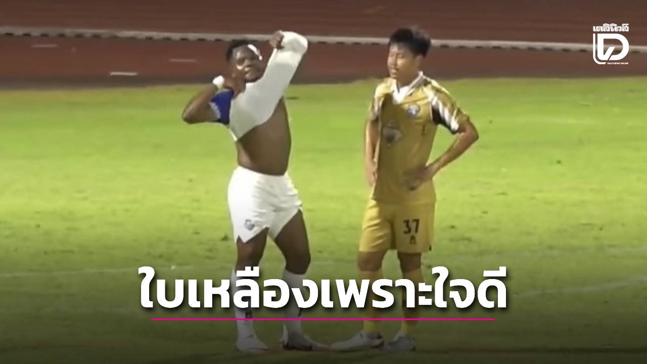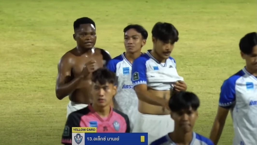จากนั้น ผู้ตัดสินเรียกผู้เล่นทั้ง 2 ทีม มาเข้าแถวเพื่อจับมือกัน ผู้ตัดสินเห็น นานด์เย ของลพบุรี ไม่มีเสื้อ จึงสอบถามว่า “เสื้อไปไหน?” ซึ่งเจ้าตัวบอกว่า “เสื้อไม่มีแล้ว” ผู้ตัดสินจึงให้ใบเหลืองกับ นานด์เย