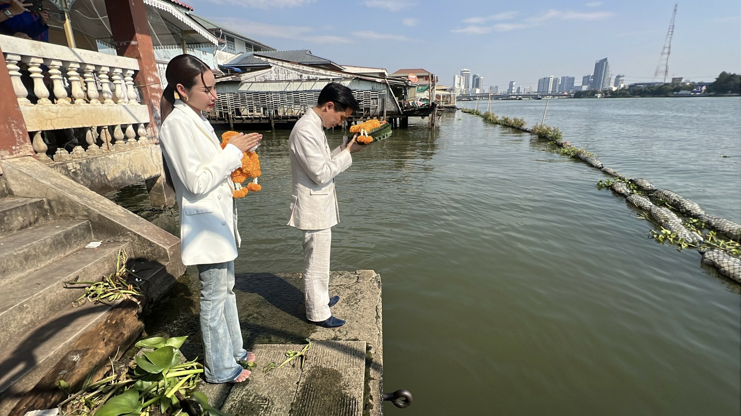 หลังจากนั้นอาจารย์ปานเทพ ได้นำกระทงดอกดาวเรือง ไปลอยลงแม่น้ำเจ้าพระยา และโปรยเหรียญ จากนั้นได้เปลี่ยนรูปของ แตงโม นิดา ที่บริเวณม้านั่งของศาลาท่าน้ำ ท่าเรือพิบูลสงคราม1 โดยใช้รูปเดิมที่แตงโมสวมชุดพยาบาล ใส่กรอบสีน้ำตาลเข้ม แทนของเดิมที่ไม่มีกรอบ พร้อมวางอาหาร ข้าวผัด ซาลาเปา ของหวาน และผลไม้ไว้ที่หน้ารูป เพื่อขอเปิดทางให้การจำลองเหตุการณ์ในวันพรุ่งนี้ (16 ม.ค. 68) ราบรื่น