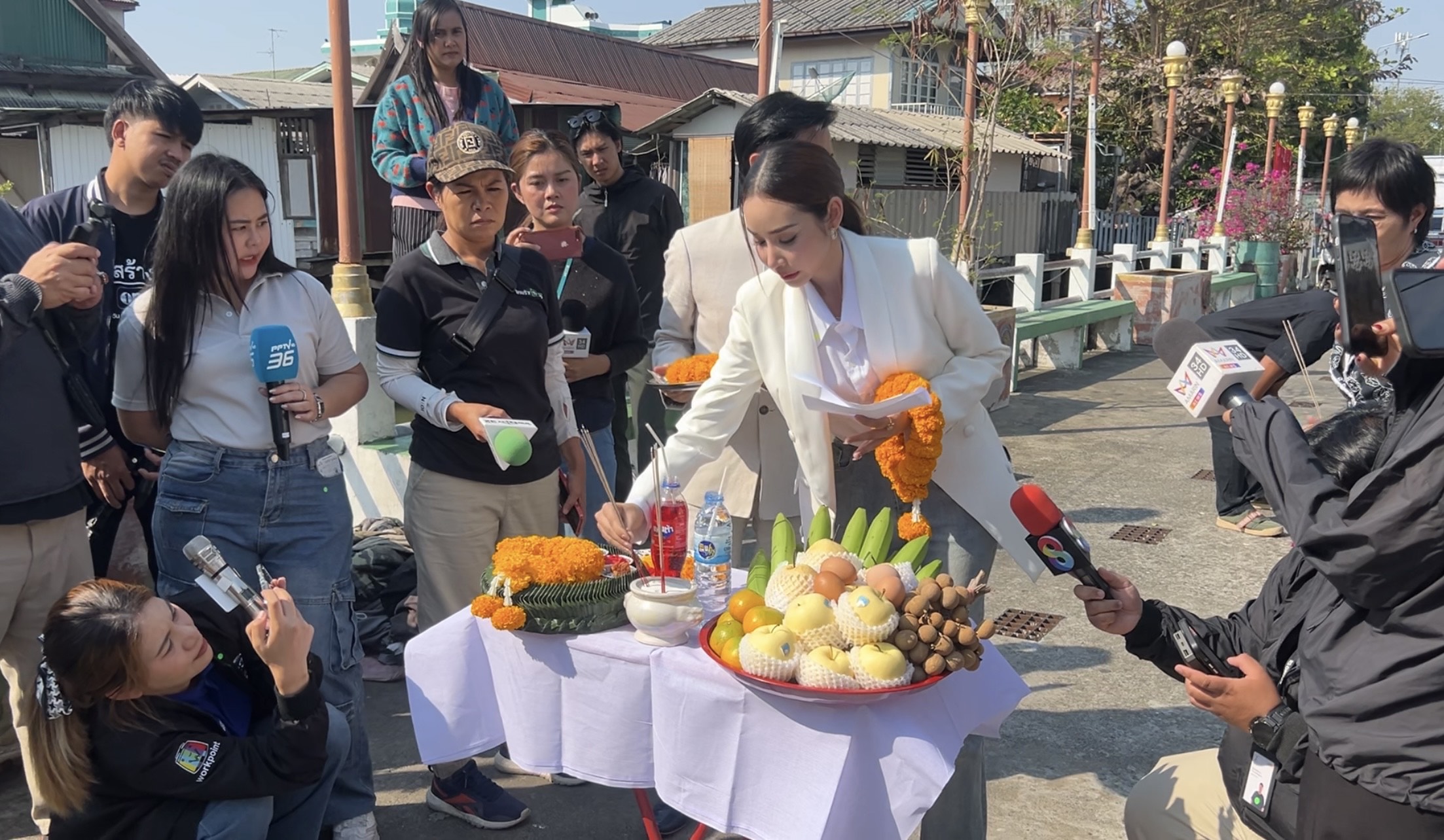 เมื่อเวลา 14.30 น. วันที่ 15 ม.ค. 68 อาจารย์ปานเทพ พัวพงษ์พันธ์ คณบดีวิทยาลัยการแพทย์แผนตะวันออก มหาวิทยาลัยรังสิต พร้อมด้วยน้องฟ้า บาร์บี้ มิสแกรนด์เชียงใหม่ 1 ในผู้แสดงเป็นตัวแทน แตงโม ดาราสาวพลัดตกเรือเสียชีวิต เดินทางมายังท่าเรือพิบูลสงคราม 1 เพื่อทำพิธีบวงสรวงโดยนำพวงมาลัยดาวเรือง ผลไม้ อาหารคาวหวาน ตั้งโต๊ะหน้าท่าเรือตามความเชื่อ