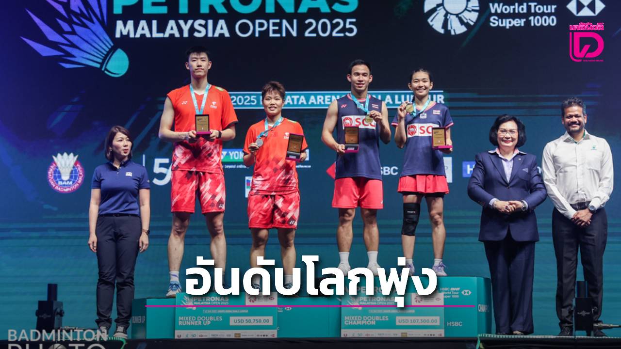 ขณะที่ ประเภทคู่ผสม “บาส” เดชาพล พัววรานุเคราะห์ กับ “เฟม” ศุภิสรา เพียวสามพราน คู่ผสมคู่ใหม่ของไทย ที่คว้าแชมป์รายการใหญ่มาก่อนหน้านี้ถึง 3 รายการ อันดับโลกยังคงพุ่งขึ้นอย่างต่อเนื่อง แม้ในศึก “อินเดีย โอเพ่น 2025” จะตกรอบ 2 ก็ตาม แต่ยังเพียงพอที่อันดับขึ้น โดยสัปดาห์นี้ขึ้นมาอีก 7 ขั้น จากคู่มือ 33 มาเป็นคู่มือ 26 ของโลก