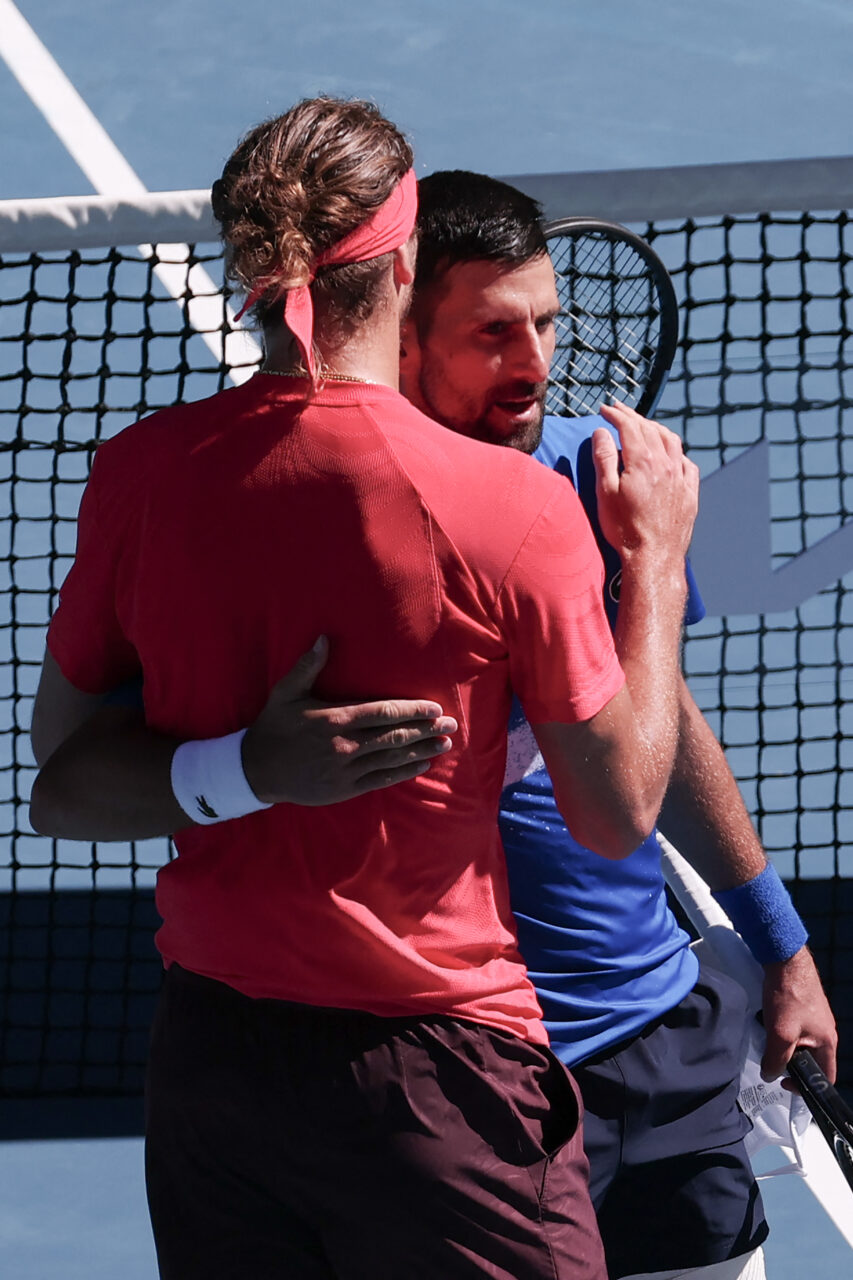 ด้าน ยอโควิช วัย 37 ปี เจ้าของแชมป์ออสเตรเลียน โอเพ่น 10 สมัย มีอาการบาดเจ็บมาตั้งแต่เกมรอบ 8 คนสุดท้ายกับ คาร์ลอส อัลคาราซ ของสเปน และต้องพันผ้าที่ต้นขาซ้ายลงเล่นในเกมนี้ โดยหลังจากที่แพ้ไปในเซตแรก เขาได้เดินมาที่หน้าเนตเพื่อขอยอมแพ้ และจับมือกับ ซเวเรฟ ทันที ทำให้ถูกแฟนๆ ในร็อด เลเวอร์ อารีนา โห่ใส่อย่างหนัก เพราะคาดหวังจะได้ดูเกมที่สนุก แต่กลับได้ดูแค่เซตเดียว